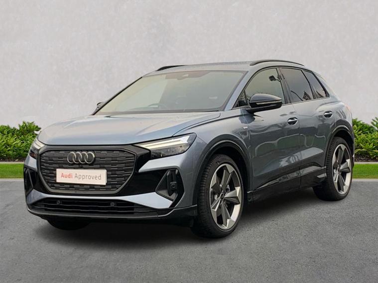 Reference: SA75JJK. Ayr Audi are offering a rare opportunity to own this AUDI Q4 e-Tron 210kW 45 82kWh Black Edition 5dr Auto. This vehicle was registered by us as a demonstrator & has been maintained in accordance with the manufacturers recommendations. The vehicle is now being readied for sale & as such represents a strong saving against the price of purchasing this as a brand new vehicle. As a demonstrator the mileage may be different to that advertised. Please check with us to confirm the current mileage. - In accordance with the manufacturers requirement, this vehicle is sanctioned for handover from MARCH. ===================================================================== Audi’s compact electric SUV, the Q4 e-tron delivers modern styling, a refined ride, and all the benefits of EV driving. Spacious and tech-focused, it’s perfect for those making the jump to premium electric mobility.Standard features on this car include Integrated SATELLITE NAVIGATION with real-time routing and traffic updates. CLIMATE CONTROL which automatically regulates cabin temperature for you. VIRTUAL COCKPIT so that you can customise the digital dashboard with maps, gauges, and media. CRUISE CONTROL to maintain a steady speed without constant pedal input. FRONT AND REAR PARKING SENSORS to help manoeuvring in tight spaces whether you are going forward or reversing. REAR CAMERA for easier and safer reversing. HEATED FRONT SEATS to keep your comfortable in cold weather conditions. Plus lots more. ===================================================================== 150 MULTI POINT CHECK | AUDI PARTS |FACTORY TRAINED TECHNICIANS 12 MONTH MANUFACTURER BACKED WARRANTY & ROADSIDE ASSISTANCE. AUDI CONNECTED|HISTORY CHECKS ===================================================================== Lookers are an authorised representative for a wide range of award-winning car manufacturers, providing you with an unparalleled choice of quality and approved used cars, currently for sale. Our exceptional standards ensure you receive the best possible service when you purchase with us, ensuring peace of mind when you drive away with your new vehicle. With us representing so many great brands we are an excellent position to offer you a fair and transparent price for your part exchange. - Our demonstrators & courtesy vehicles by nature are made available to our customers to experience the product or for help getting around whilst with us for aftersales work and as such could have had multiple users. At Lookers, we care about our customers and want to ensure that the price you see is the price you pay. Our Transparent pricing policy simply means, honest, straightforward pricing offering our vehicles at the best price possible; ensuring no haggling or hassle for you.