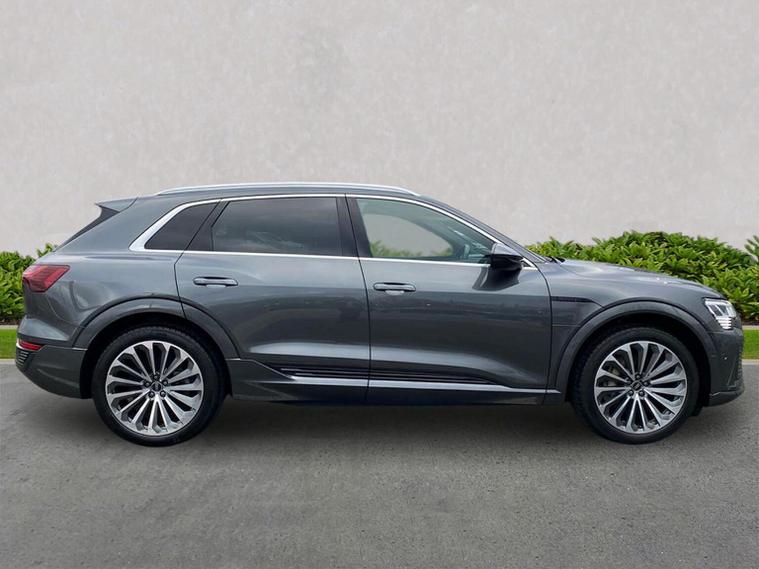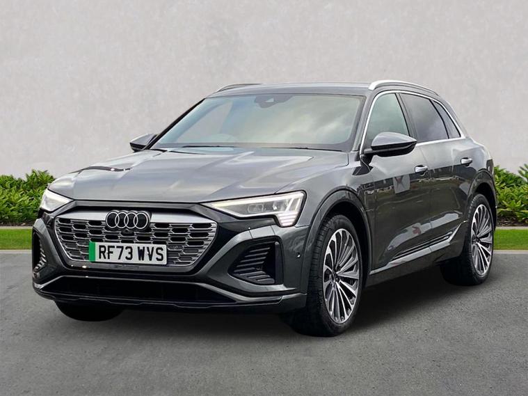 Reference: RF73WVS. Farnborough Audi are offering a rare opportunity to own this AUDI Q8 E-TRON 55 S-LINE QUATTRO 408PS. This excellent example has full service history, has been prepared for sale by our fully trained, experienced and skilled technicians passing our exacting pre sale checks and is ready to go. ===================================================================== The electric Q8 e-tron brings Audi’s flagship SUV into the EV world. With impressive range, rapid charging, and a high-end cabin, it’s perfect for luxury SUV buyers going electric without compromise.Standard features on this car include Integrated SATELLITE NAVIGATION with real-time routing and traffic updates. SATELLITE NAVIGATION via APPLE CAR PLAY which allows integration using apps like Maps to help manage your journeys. FULL LEATHER delivering a luxury feel in the cabin. CLIMATE CONTROL which automatically regulates cabin temperature for you. VIRTUAL COCKPIT so that you can customise the digital dashboard with maps, gauges, and media. CRUISE CONTROL to maintain a steady speed without constant pedal input. REAR PARKING SENSORS to warn of objects behind while reversing. REAR CAMERA for easier and safer reversing. HEATED FRONT SEATS to keep your comfortable in cold weather conditions. Plus lots more. ===================================================================== 150 MULTI POINT CHECK | AUDI PARTS |FACTORY TRAINED TECHNICIANS 12 MONTH MANUFACTURER BACKED WARRANTY & ROADSIDE ASSISTANCE. AUDI CONNECTED|HISTORY CHECKS ===================================================================== Lookers are an authorised representative for a wide range of award-winning car manufacturers, providing you with an unparalleled choice of quality and approved used cars, currently for sale. Our exceptional standards ensure you receive the best possible service when you purchase with us, ensuring peace of mind when you drive away with your new vehicle. With us representing so many great brands we are an an excellent position to offer you a fair and transparent price for your part exchange. At Lookers, we care about our customers and want to ensure that the price you see is the price you pay. Our Transparent pricing policy simply means, honest, straightforward pricing offering our vehicles at the best price possible; ensuring no haggling or hassle for you.