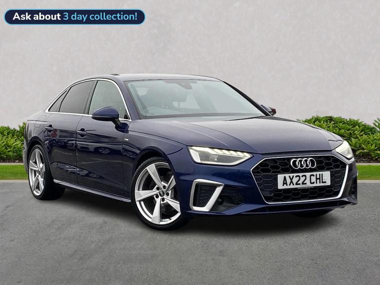 Reference: AX22CHL. Farnborough Audi are offering a rare opportunity to own this AUDI A4 35 Tdi S-LINE SALOON S-TRONIC 163PS. This 1 owner vehicle has full service history, has been prepared for sale by our fully trained, experienced and skilled technicians passing our exacting pre sale checks and is ready to go. ===================================================================== A well-rounded executive sedan, the A4 offers a smooth ride, responsive handling, and a tech-rich interior. It’s practical yet refined, with quattro AWD and efficient engine options. Ideal for those who want comfort and sophistication in a daily driver. This car is supplied with the following optional upgrades :- COMFORT & SOUND PACK which combines premium audio, comfort features, and parking assistance. . Standard features on this car include Integrated SATELLITE NAVIGATION with real-time routing and traffic updates. SATELLITE NAVIGATION via APPLE CAR PLAY which allows integration using apps like Maps to help manage your journeys. 360 DEGREE CAMERAS giving an all around view from multiple angles for safer manoeuvring. CLIMATE CONTROL which automatically regulates cabin temperature for you. VIRTUAL COCKPIT so that you can customise the digital dashboard with maps, gauges, and media. CRUISE CONTROL to maintain a steady speed without constant pedal input. FRONT AND REAR PARKING SENSORS to help manoeuvring in tight spaces whether you are going forward or reversing. PART LEATHER combining leather with cloth for a balanced premium interior. Plus lots more. - As a VAT Qualifying vehicle it has the additional benefit to VAT Registered individuals or companies buying the car solely for business use, as they could reclaim the 20% VAT from the purchase price. ===================================================================== 150 MULTI POINT CHECK | AUDI PARTS |FACTORY TRAINED TECHNICIANS 12 MONTH MANUFACTURER BACKED WARRANTY & ROADSIDE ASSISTANCE. AUDI CONNECTED|HISTORY CHECKS ===================================================================== Lookers are an authorised representative for a wide range of award-winning car manufacturers, providing you with an unparalleled choice of quality and approved used cars, currently for sale. Our exceptional standards ensure you receive the best possible service when you purchase with us, ensuring peace of mind when you drive away with your new vehicle. With us representing so many great brands we are an excellent position to offer you a fair and transparent price for your part exchange. - Unless otherwise stated, vehicles may have previously been used for business or hire purposes and so may have had multiple users. Where we hold documents relating to vehicle history, these are available for inspection on request. At Lookers, we care about our customers and want to ensure that the price you see is the price you pay. Our Transparent pricing policy simply means, honest, straightforward pricing offering ou