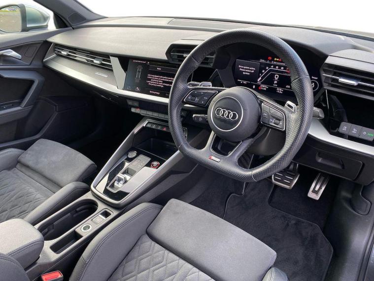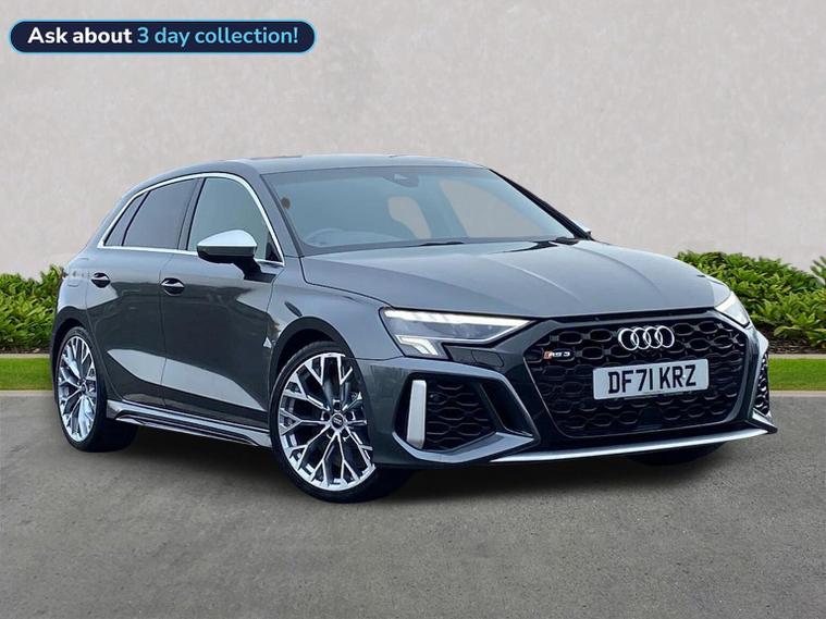 Reference: DF71KRZ. Farnborough Audi are offering a rare opportunity to own this AUDI RS3 2.5TFSi 5DR QUATTRO S-TRONIC 400PS. This 1 owner vehicle has full service history, has been prepared for sale by our fully trained, experienced and skilled technicians passing our exacting pre sale checks and is ready to go. ===================================================================== The RS3 offers thrilling performance in a compact package, thanks to its iconic engine delivering sharp acceleration and a unique exhaust note. It features quattro all-wheel drive, aggressive styling, and advanced tech. Ideal for city driving with serious track potential, it blends everyday usability with hot-hatch excitement.Standard features on this car include Integrated SATELLITE NAVIGATION with real-time routing and traffic updates. SATELLITE NAVIGATION via APPLE CAR PLAY which allows integration using apps like Maps to help manage your journeys. CLIMATE CONTROL which automatically regulates cabin temperature for you. VIRTUAL COCKPIT so that you can customise the digital dashboard with maps, gauges, and media. CRUISE CONTROL to maintain a steady speed without constant pedal input. REAR PARKING SENSORS to warn of objects behind while reversing. REAR CAMERA for easier and safer reversing. HEATED FRONT SEATS to keep your comfortable in cold weather conditions. PART LEATHER combining leather with cloth for a balanced premium interior. Plus lots more. - As a VAT Qualifying vehicle it has the additional benefit to VAT Registered individuals or companies buying the car solely for business use, as they could reclaim the 20% VAT from the purchase price. ===================================================================== 150 MULTI POINT CHECK | AUDI PARTS |FACTORY TRAINED TECHNICIANS 12 MONTH MANUFACTURER BACKED WARRANTY & ROADSIDE ASSISTANCE. AUDI CONNECTED|HISTORY CHECKS ===================================================================== Lookers are an authorised representative for a wide range of award-winning car manufacturers, providing you with an unparalleled choice of quality and approved used cars, currently for sale. Our exceptional standards ensure you receive the best possible service when you purchase with us, ensuring peace of mind when you drive away with your new vehicle. With us representing so many great brands we are an excellent position to offer you a fair and transparent price for your part exchange. - Unless otherwise stated, vehicles may have previously been used for business or hire purposes and so may have had multiple users. Where we hold documents relating to vehicle history, these are available for inspection on request. At Lookers, we care about our customers and want to ensure that the price you see is the price you pay. Our Transparent pricing policy simply means, honest, straightforward pricing offering our vehicles at the best price possible; ensuring no haggling or hassle for you.