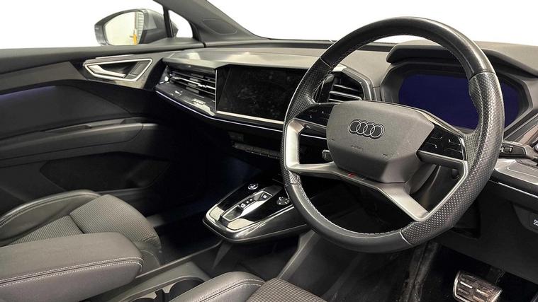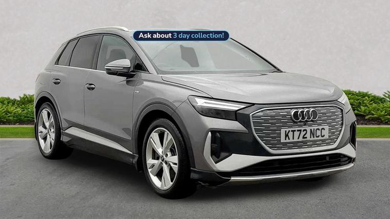 KT72NCC . Glasgow Audi are offering a rare opportunity to own this AUDI Q4 S line 50 e-tron quattro 220, 00 Kw. This 1 owner vehicle has full service history, has been prepared for sale by our fully trained, experienced and skilled technicians passing our exacting pre sale checks and is ready to go. ===================================================================== Audi’s compact electric SUV, the Q4 e-tron delivers modern styling, a refined ride, and all the benefits of EV driving. Spacious and tech-focused, it’s perfect for those making the jump to premium electric mobility. Standard features on this car include Integrated SATELLITE NAVIGATION with real-time routing and traffic updates. SATELLITE NAVIGATION via APPLE CAR PLAY which allows integration using apps like Maps to help manage your journeys. FULL LEATHER delivering a luxury feel in the cabin. CLIMATE CONTROL which automatically regulates cabin temperature for you. VIRTUAL COCKPIT so that you can customise the digital dashboard with maps, gauges, and media. CRUISE CONTROL to maintain a steady speed without constant pedal input. REAR PARKING SENSORS to warn of objects behind while reversing. HEATED FRONT SEATS to keep your comfortable in cold weather conditions. Plus lots more. - As a VAT Qualifying vehicle it has the additional benefit to VAT Registered individuals or companies buying the car solely for business use, as they could reclaim the 20% VAT from the purchase price. ===================================================================== 150 MULTI POINT CHECK | AUDI PARTS |FACTORY TRAINED TECHNICIANS 12 MONTH MANUFACTURER BACKED WARRANTY & ROADSIDE ASSISTANCE. AUDI CONNECTED|HISTORY CHECKS ===================================================================== Lookers are an authorised representative for a wide range of award-winning car manufacturers, providing you with an unparalleled choice of quality and approved used cars, currently for sale. Our exceptional standards ensure you receive the best possible service when you purchase with us, ensuring peace of mind when you drive away with your new vehicle. With us representing so many great brands we are an excellent position to offer you a fair and transparent price for your part exchange. At Lookers, we care about our customers and want to ensure that the price you see is the price you pay. Our Transparent pricing policy simply means, honest, straightforward pricing offering our vehicles at the best price possible; ensuring no haggling or hassle for you.
