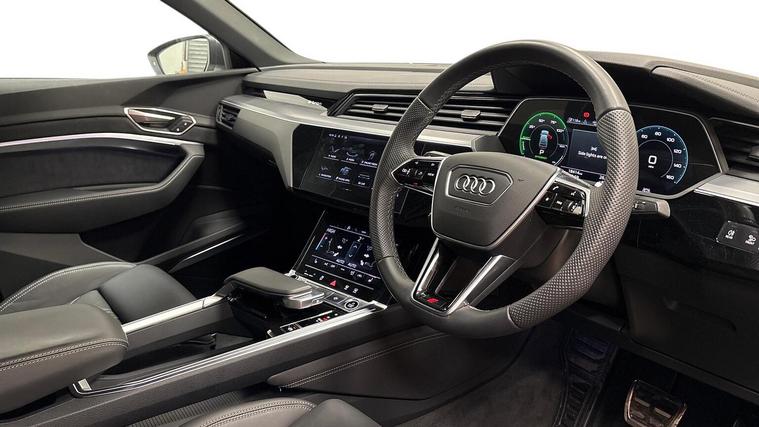 Reference: MD73PZM . Hamilton Audi are offering a rare opportunity to own this AUDI Q8 55 S line Sportback 5dr Electric Auto quattro 114kWh (11kW Charger) (408 ps). This 1 owner vehicle has full service history, was supplied by our group and has been maintained by us too. Since being returned to us it has been fully checked over by our fully trained, experienced and skilled technicians and is ready to go. ===================================================================== The electric Q8 e-tron brings Audi’s flagship SUV into the EV world. With impressive range, rapid charging, and a high-end cabin, it’s perfect for luxury SUV buyers going electric without compromise. This car is supplied with the following optional upgrades :- TECHNOLOGY PACK which adds smart driving aids and convenience tech. . Standard features on this car include Integrated SATELLITE NAVIGATION with real-time routing and traffic updates. SATELLITE NAVIGATION via APPLE CAR PLAY which allows integration using apps like Maps to help manage your journeys. FULL LEATHER delivering a luxury feel in the cabin. CLIMATE CONTROL which automatically regulates cabin temperature for you. VIRTUAL COCKPIT so that you can customise the digital dashboard with maps, gauges, and media. CRUISE CONTROL to maintain a steady speed without constant pedal input. FRONT AND REAR PARKING SENSORS to help manoeuvring in tight spaces whether you are going forward or reversing. REAR CAMERA for easier and safer reversing. Plus lots more. - As a VAT Qualifying vehicle it has the additional benefit to VAT Registered individuals or companies buying the car solely for business use, as they could reclaim the 20% VAT from the purchase price. ===================================================================== 150 MULTI POINT CHECK | AUDI PARTS |FACTORY TRAINED TECHNICIANS 12 MONTH MANUFACTURER BACKED WARRANTY & ROADSIDE ASSISTANCE. AUDI CONNECTED|HISTORY CHECKS ===================================================================== Retail Customers who purchase an Audi Approved Used Q8 e-tron, Q6 e-tron, e-tron GT (inc RS) or A6 e-tron vehicle, between 2nd Jan 2026 and 31st March 2026 inclusive, and take delivery of this vehicle before 5th April 2026 inclusive, can receive an OHME home charger. To receive the Ohme home EV charger, you must be a homeowner or be a renter with the landlord's permission, and in each case have off-street parking at the property. You must be a full time resident at the address where the home EV charger is installed. T&C's apply. Contact us for full details. Lookers are an authorised representative for a wide range of award-winning car manufacturers, providing you with an unparalleled choice of quality and approved used cars, currently for sale. Our exceptional standards ensure you receive the best possible service when you purchase with us, ensuring peace of mind when you drive away with your new vehicle. With us representing so many great brands we are a