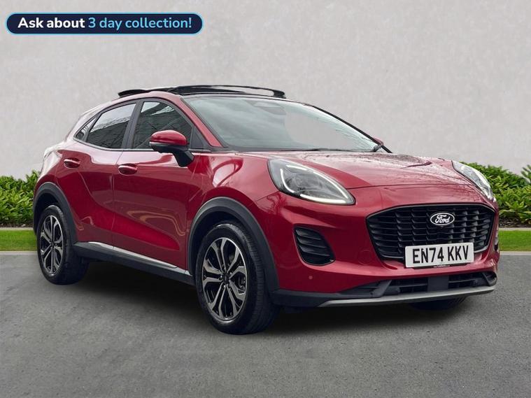 Ford Puma Titanium| Ford Direct | Huge Spec | We are delighted to offer this Ford Puma 1.0T EcoBoost MHEV Titanium, a superb Ford Direct approved example finished in the very exclusive Lucid Red Paint, Ford's most expensive colour option. With only 9505 miles, this Puma represents excellent value for money with a huge saving from brand new on a vehicle with very little mileage and an exceptional factory specification, featuring almost every available option. Key Vehicle Details • Registration: EN74KKV• 1.0T EcoBoost MHEV –125PS • Mileage: 9505 • Euro 6 (Start/Stop) • Ford Direct Approved Factory Options & Key Features • Panoramic Roof – Power Opening • Premium Synthetic Leather With Synthetic Suede Inserts – Red Stitching – Black • Winter Pack (Heated Front Seats & Heated Steering Wheel) • Driver Assistance Pack • 19" Alloy Wheels • Adaptive Cruise Control • Blind Spot Information System • 360 Degree Parking Camera • Front & Rear Parking Sensors • Automatic Parking Assist • Comfort Pack (Handsfree power tailgate, Keyless Entry, Wireless Charger• SYNC Touchscreen With Satellite Navigation • Apple CarPlay & Android Auto • Full Digital Driver Display • LED Headlights & LED Rear Lights • ST-Line X Body Styling • Key-Free Entry & Push Button Start • Dual-Zone Climate Controlled Air Conditioning • Selectable Drive Modes • Wireless Charging Pad • Privacy Glass • ISOFIX Child Seat Mounting Points. ***FORD DIRECT PREMIUM APPROVED / 24 MONTHS UNLIMITED MILEAGE WARRANTY WITH OPTION TO EXTEND + 24 MONTHS EUROPEAN ROADSIDE ASSISTANCE / FULL SERVICE HISTORY***SECURE THIS CAR TODAY USING OUR CLICK AND COLLECT SERVICE WITH ONLY £250 DEPOSIT – NO ADMIN FEE’S*** Lookers Leeds (LS97RY) ARE A FRANCHISED RETAILER. WE RETAIL ONLY HAND CHOSEN APPROVED VEHICLES WHICH ARE FULLY PREPARED PRIOR TO SALE BY OUR FULLY QUALIFIED FORD & MULTI-FRANCHISE APPROVED TECHNICIANS. WE ALSO OFFER COMPETITIVE FINANCE RATES AND ALL OUR VEHICLES ARE THOROUGHLY INSPECTED & HPI CLEAR. AS PART OF THE LOOKERS LIMITED GROUP, WE HAVE ACCESS TO OVER 40 DIFFERENT BRANDS, SO WE ARE BEST PLACED TO FIND THE CORRECT VALUE FOR YOUR PART EXCHANGE. BUY WITH CONFIDENCE FROM A COMPANY ESTABLISHED IN 1908 – LOOKERS “A GOOD DEAL. BETTER” ** PLEASE CALL NOW FOR MORE INFORMATION & A PERSONALISED VIDEO SHOWING YOU YOUR NEXT VEHICLE t: 01138033048 "Unless otherwise stated, vehicles may have previously been used for business or hire purposes and so may have had multiple users. Where we hold documents relating to vehicle history, these are available for inspection on request.”