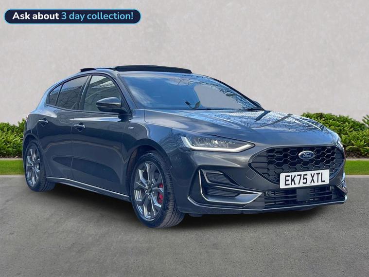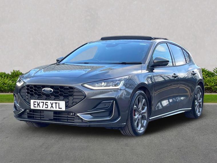 Ford Focus 1.0T mHEV ST Line | Ford Direct | Huge Factory Spec | Panoramic Roof | 1, 999 Miles We are delighted to offer this outstanding Ford Focus ST Line, presented as a Ford Direct Premium Approved vehicle and finished in Magnetic Grey metallic — one of the most desirable colours in the range. With only 1, 999 miles, this example is in exceptional condition and comes loaded with an extensive list of sought after factory options. Powered by the efficient 1.0T Mild Hybrid (mHEV) 125PS engine paired with a manual gearbox, this Focus delivers excellent performance, refinement and fuel economy. As a Ford Direct vehicle, it also includes 2 years unlimited mileage warranty and 2 years RAC roadside assistance for total peace of mind. Vehicle Details • Registration: EK75 XTL • Mileage: 1, 999 miles • Engine: 1.0T EcoBoost mHEV Petrol Hybrid • Power: 125PS • Transmission: Manual • Drive: Front Wheel Drive • Emissions: Euro 6 (s/s) Key Features & Factory Options • Blind Spot Information System • Panoramic Roof – Openable • ST Line Design Pack • Winter Pack (Heated Seats, Heated Steering Wheel, Heated Windscreen) • Parking Pack • Driver Assistance Pack • Magnetic Grey Metallic Paint • Rear View Camera • Front & Rear Parking Sensors • SYNC Infotainment System With Apple CarPlay & Android Auto • Digital Driver Display • Satellite Navigation • Climate Control • Key Free Start • LED Daytime Running Lights • Lane Keeping Aid • Cruise Control With Speed Limiter • ISOFIX Child Seat Mounting Points Why Buy This Ford Direct Focus? This is one of the best specified Focus ST Line models available, combining the stylish ST Line Design Pack with major factory upgrades including the Panoramic Roof, Blind Spot Information System, Winter Pack, Parking Pack, and Driver Assistance Pack. With just 1, 999 miles, Magnetic Grey metallic paint, and full Ford Direct benefits, this example offers outstanding value, high equipment levels and premium reassurance. A rare, ultra low mileage, top spec Focus ST Line — ready to drive away. ***FORD DIRECT PREMIUM APPROVED / 24 MONTHS UNLIMITED MILEAGE WARRANTY WITH OPTION TO EXTEND + 24 MONTHS EUROPEAN ROADSIDE ASSISTANCE / FULL SERVICE HISTORY***SECURE THIS CAR TODAY USING OUR CLICK AND COLLECT SERVICE WITH ONLY £250 DEPOSIT – NO ADMIN FEE’S*** Lookers Leeds (LS9 7RY) is a franchised retailer, offering a wide selection of hand-picked, approved vehicles. Every car is fully prepared prior to sale by our Ford and multi-franchise approved technicians, thoroughly inspected, and HPI clear for your peace of mind. We offer competitive, flexible finance solutions to help make your next vehicle more affordable, with tailored packages designed to suit your budget. Thinking of part-exchanging your current vehicle? As part of the Lookers Group — with access to over 40 leading brands — we are ideally placed to offer you a strong, accurate valuation, helping to reduce the overall cost of your next car.