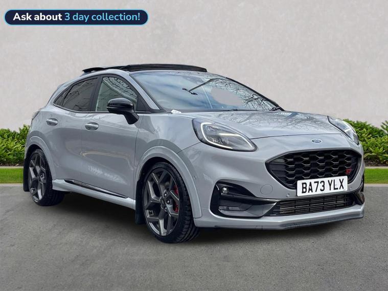 ***Ford Puma 1.5 200ps ST (Performance Pack) | Grey Matter | Panoramic Roof | All Options*** We are thrilled to offer this superb Ford Puma ST, finished in Grey Matter, one of the most desirable and sought after colours available across the entire Ford Performance range. With 33, 295 miles, a full specification of premium factory options, and presented in excellent condition, this example stands out as one of the best equipped Puma STs currently available. This particular car features the ST Performance Pack, the Driver Assistance Pack, an Openable Panoramic Roof, and the Handsfree Power Tailgate — making it the perfect specification for enthusiast drivers and collectors alike. Powered by the exhilarating 1.5 EcoBoost 200PS engine, the Puma ST delivers thrilling performance, razor sharp handling and a uniquely engaging driving experience that embodies everything Ford Performance stands for. Vehicle Details • Registration: BA73 YLX • Mileage: 33, 295 miles • Engine: 1.5 EcoBoost Petrol • Power: 200PS Key Features & Factory Options • ST Performance Pack o Quaife Limited Slip Differential o Launch Control o Track Mode • Driver Assistance Pack o Adaptive Cruise Control o Blind Spot Information System o Traffic Sign Recognition o Driver Alert System • Parking Pack o Rear Parking Camera o Automatic Parking Assist • Panorama Roof – Openable • Handsfree Power Tailgate • Recaro Sports Seats • Heated Front Seats • Heated Steering Wheel • Red Brake Calipers • SYNC Infotainment System With Apple CarPlay & Android Auto • Digital Driver Display • B&O Premium Audio System • Front & Rear Parking Sensors • Key Free Start • LED Headlights & Daytime Running Lights • Automatic Lights & Rain Sensing Wipers Ford Performance Heritage & Long Term Desirability The Puma ST is part of the legendary Ford Performance family — a lineage responsible for icons such as the Fiesta ST, Focus ST and RS models. These vehicles have become fan favourites and, over time, many have achieved exceptional residual values thanks to their rarity, driver engagement and enthusiast appeal. As hot hatch and performance petrol production declines industry wide, well specified Puma ST models — especially in rare colours like Grey Matter — are becoming increasingly sought after. Examples fitted with the Performance Pack, Driver Assistance Pack, and Panoramic Roof are especially desirable and often hold (or even rise in) value among Ford enthusiasts and collectors. ***1 PRIVATE OWNER FROM NEW / FORD WARRANTY UNTIL SEPTEMBER 2026 WITH OPTION TO EXTEND / FULL SERVICE HISTORY*** SECURE THIS CAR TODAY USING OUR CLICK AND COLLECT SERVICE WITH ONLY £250 DEPOSIT – NO ADMIN FEE’S*** Lookers Leeds (LS9 7RY) is a franchised retailer, offering a wide selection of hand-picked, approved vehicles. Every car is fully prepared prior to sale by our Ford and multi-franchise approved technicians, thoroughly inspected, and HPI clear for your peace of mind.