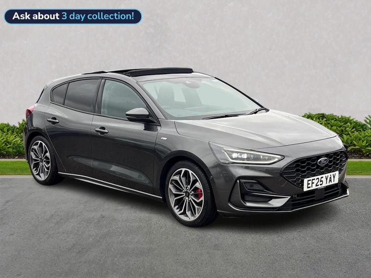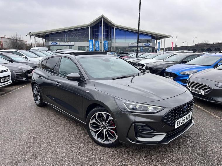 ***FORD DIRECT PREMIUM APPROVED***Optional extras from new include DYNAMIC MATRIX LED HEADLIGHTS, PARKING PACK (REAR VIEW CAMERA, DOOR EDGE GUARDS & AUTO PARK ASSIST), DRIVER ASSISTANCE PACK (INCLUDES ADAPTIVE CRUISE CONTROL, AUTO HIGH BEAM ASSIST & DRIVER ALERT SYSTEM), BLIND SPOT DETECTION SYSTEM (BLIS) & ELECTRIC PANORAMIC OPENING SUNROOF. Other standard features include 18" DIAMOND CUT ALLOYS, FULL ST LINE SPORTS STYLING BODY KIT WITH REAR SPOILER & PRIVACY GLASS, SYNC 4 13.2" LARGE TOUCH SCREEN ENTERTAINMENT WITH SATELLITE NAVIGATION & DAB RADIO, DIGITAL COCKPIT, COMPATIBLE WITH APPLE CAR PLAY & ANDROID AUTO, SPORTS FRONT SEATS WITH FLAT BOTTOM MULTI FUNCTION STEERING WHEEL & STAINLESS STEEL RACE PEDALS, HEATED FRONT SEATS & HEATED STEERING WHEEL, WIRELESS CHARGING PAD, B&O PLAYER, BLUETOOTH WITH VOICE COMMAND, CLIMATE CONTROLLED AIR CONDITIONING, QUICK CLEAR HEATED FRONT WINDSCREEN FOR THOSE FROSTY MORNINGS AND SO MUCH MORE . We're absolutely delighted to offer this stunning latest shape Focus ST Line X as part of our Approved Used stock. This top of the range Focus with only 5519 miles is presented in stunning MAGNETIC GREY metallic colour with contrasting sports cloth trim. We believe this excellent value Focus with most optional extras from new is a pure joy to drive with effective hybrid technology delivering smooth & efficient power (155 BHP) on every surface. This car needs to be viewed and driven to be truly appreciated so why wait, call now to enquire*** 2 YEARS FREE RAC ROADSIDE ASSISTANCE WITH THIS CAR***Lookers Ford Sheffield (S4 7UQ) ARE A FORD APPROVED RETAILER. WE OFFER COMPETITIVE FINANCE RATES AND ALL OUR VEHICLES ARE THOROUGHLY INSPECTED & HPI CLEAR. AS PART OF THE LOOKERS LIMITED GROUP, WE HAVE ACCESS TO OVER 40 DIFFERENT BRANDS, SO WE ARE BEST PLACED TO FIND THE CORRECT VALUE FOR YOUR PART EXCHANGE. BUY WITH CONFIDENCE FROM A COMPANY ESTABLISHED IN 1908. LOOKERS A GOOD DEAL, BETTER** PLEASE CALL NOW FOR MORE INFORMATION & A PERSONALISED VIDEO SHOWING YOU YOUR NEXT CAR t: 01143389217 Unless otherwise stated, vehicles may have previously been used for business or hire purposes and so may have had multiple users. Where we hold documents relating to vehicle history, these are available for inspection on request.