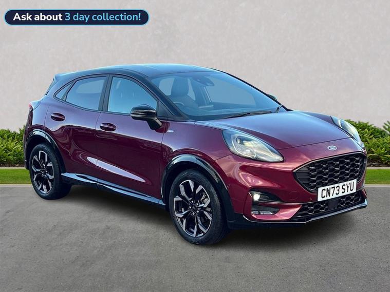 ***SPECIAL VIVID RUBY EDITION***DRIVER ASSISTANCE PACK (INCLUDES ADAPTIVE CRUISE CONTROL with EVASIVE STEERING, ACTIVE PARK ASSIST, FRONT & REAR PARKING SENSORS, REAR PARKING CAMERA & BLIND SPOT TECHNOLOGY (BLIS)), WINTER PACK (HEATED FRONT SEATS & HEATED STEERING WHEEL), HANDSFREE POWER TAILGATE, FULL ST-LINE BODY KIT WITH TINTED GLASS & REAR SPOILER, SATELLITE NAVIGATION with TOUCH SCREEN DISPLAY, WIRELESS CHARGING PAD, COMPATIBLE WITH APPLE CAR PLAY + ANDROID AUTO, LANE KEEPING ASSIST, PRE-COLLISION ASSIST + AUTONOMOUS BRAKING, PEDESTRIAN & CYCLIST DETECTION, BANG & OLUFFSEN B&O SOUND SYSTEM, CLIMATE CONTROLLED AIR CONDITIONING, 12.3" DIGITAL COCKPIT, SELECTABLE DRIVING MODES, FORD EXTENDED MEGA BOX (GREAT FOR HIDDEN STORAGE), KEY-FREE POWER START, POWER FOLDING DOOR MIRRORS, 4x ELECTRIC WINDOWS, HALF LEATHER INTERIOR TRIM to really finish off that quality look & feel, QUICK CLEAR HEATED FRONT WINDSCREEN FOR THOSE FROSTY MORNINGS, ISOFIX SEATS & SO MUCH MORE. We're absolutely delighted to offer this stunning Puma ST Line X Vivid Ruby Edition colour as part of our Approved Used stock. This top of the range Puma with only 5583 miles is presented in exclusive BEAUTIFUL BERRY colour with contrasting sports half leather trim. We believe this excellent value Puma is a pure joy to drive with effective HYBRID TECHNOLOGY delivering smooth & efficient power on every surface. This car needs to be viewed and driven to be truly appreciated so why wait, call now to enquire***FULL FORD SERVICE HISTORY / 2 YEAR SERVICE INTERVALS***Lookers Ford Sheffield (S4 7UQ) ARE A FORD APPROVED RETAILER. WE OFFER COMPETITIVE FINANCE RATES AND ALL OUR VEHICLES ARE THOROUGHLY INSPECTED & HPI CLEAR. AS PART OF THE LOOKERS LIMITED GROUP, WE HAVE ACCESS TO OVER 40 DIFFERENT BRANDS, SO WE ARE BEST PLACED TO FIND THE CORRECT VALUE FOR YOUR PART EXCHANGE. BUY WITH CONFIDENCE FROM A COMPANY ESTABLISHED IN 1908. LOOKERS A GOOD DEAL, BETTER** PLEASE CALL NOW FOR MORE INFORMATION & A PERSONALISED VIDEO SHOWING YOU YOUR NEXT CAR t: 01143389217 Unless otherwise stated, vehicles may have previously been used for business or hire purposes and so may have had multiple users. Where we hold documents relating to vehicle history, these are available for inspection on request.