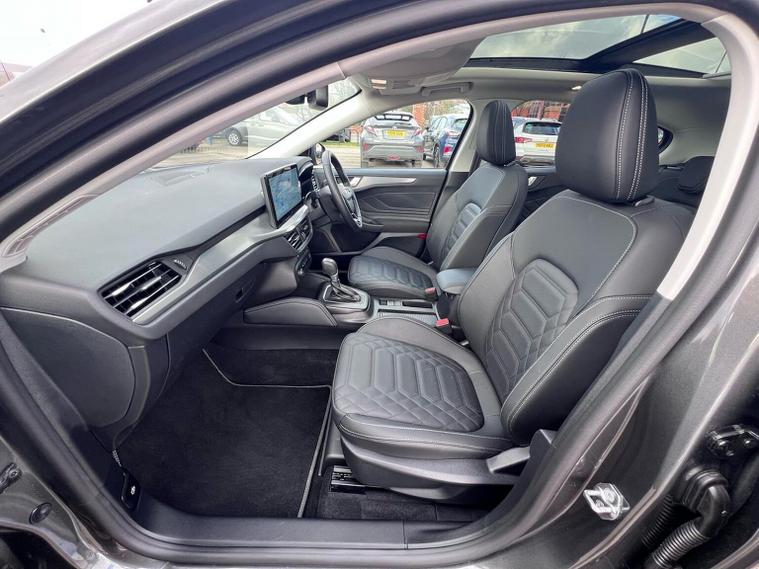 ***FORD DIRECT PREMIUM APPROVED***Optional extras include DYNAMIC MATRIX LED HEADLIGHTS, PARKING PACK (REAR VIEW CAMERA, DOOR EDGE GUARDS & AUTO PARK ASSIST), DRIVER ASSISTANCE PACK (INCLUDES ADAPTIVE CRUISE CONTROL, AUTO HIGH BEAM ASSIST & DRIVER ALERT SYSTEM), BLIND SPOT DETECTION SYSTEM (BLIS) & ELECTRIC PANORAMIC OPENING SUNROOF. Other standard features include 17" ALLOYS, PRIVACY GLASS, FRONT & REAR PARKING SENSORS, SYNC 4 13.2" LARGE TOUCH SCREEN ENTERTAINMENT WITH SATELLITE NAVIGATION & DAB RADIO, COMPATIBLE WITH APPLE CAR PLAY & ANDROID AUTO, FULL LUXURY LEATHER INTERIOR WITH HEATED FRONT SEATS & HEATED STEERING WHEEL, WIRELESS CHARGING PAD, BLUETOOTH WITH VOICE COMMAND, CLIMATE CONTROLLED AIR CONDITIONING, QUICK CLEAR HEATED FRONT WINDSCREEN FOR THOSE FROSTY MORNINGS AND SO MUCH MORE . We're absolutely delighted to offer this stunning new shape Focus Titanium X as part of our Approved Used stock. This top of the range Focus is presented in stunning Magnetic Grey metallic colour with contrasting sensico trim. We believe this excellent value Focus is a pure joy to drive with effective hybrid technology delivering smooth & efficient power (155 BHP) on every surface. This car needs to be viewed and driven to be truly appreciated so why wait, call now to enquire*** 2 YEARS FREE RAC ROADSIDE ASSISTANCE WITH THIS CAR***Lookers Ford Sheffield (S4 7UQ) ARE A FORD APPROVED RETAILER. WE OFFER COMPETITIVE FINANCE RATES AND ALL OUR VEHICLES ARE THOROUGHLY INSPECTED & HPI CLEAR. AS PART OF THE LOOKERS LIMITED GROUP, WE HAVE ACCESS TO OVER 40 DIFFERENT BRANDS, SO WE ARE BEST PLACED TO FIND THE CORRECT VALUE FOR YOUR PART EXCHANGE. BUY WITH CONFIDENCE FROM A COMPANY ESTABLISHED IN 1908. LOOKERS A GOOD DEAL, BETTER** PLEASE CALL NOW FOR MORE INFORMATION & A PERSONALISED VIDEO SHOWING YOU YOUR NEXT CAR t: 01143389217 Unless otherwise stated, vehicles may have previously been used for business or hire purposes and so may have had multiple users. Where we hold documents relating to vehicle history, these are available for inspection on request.