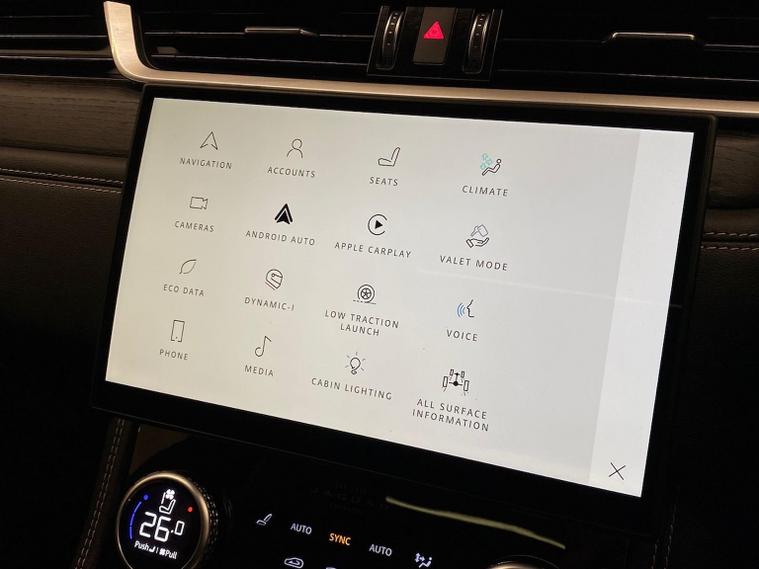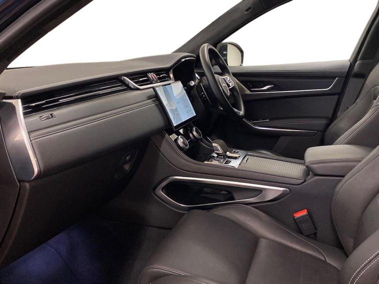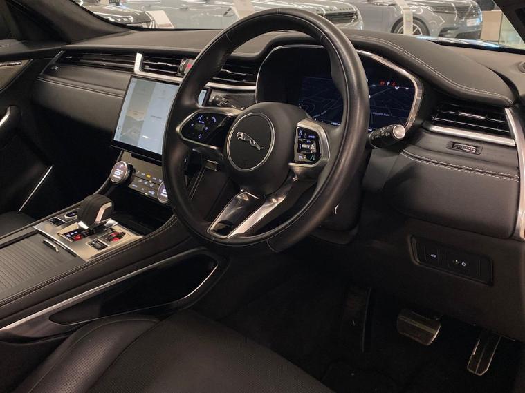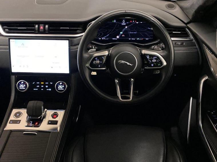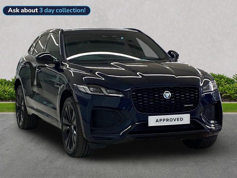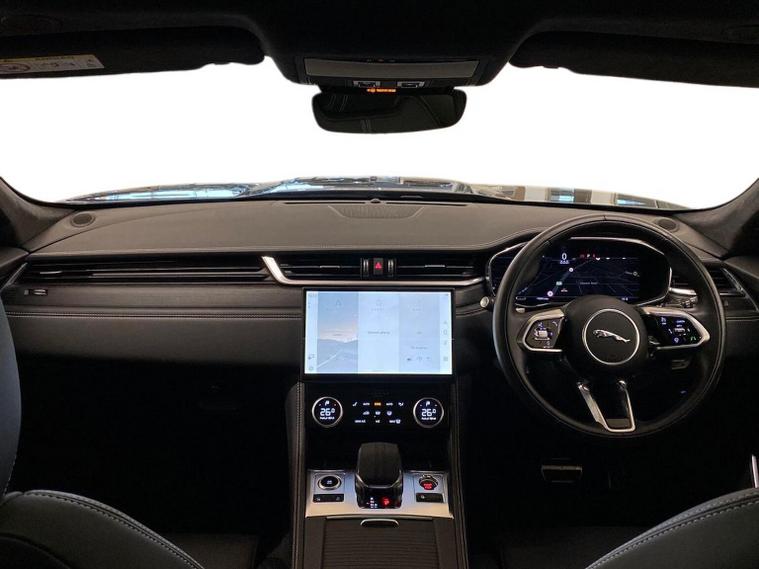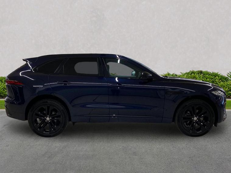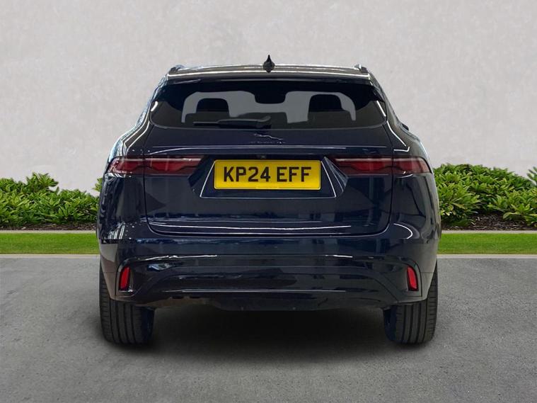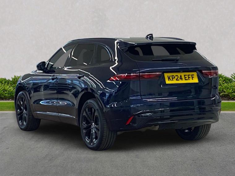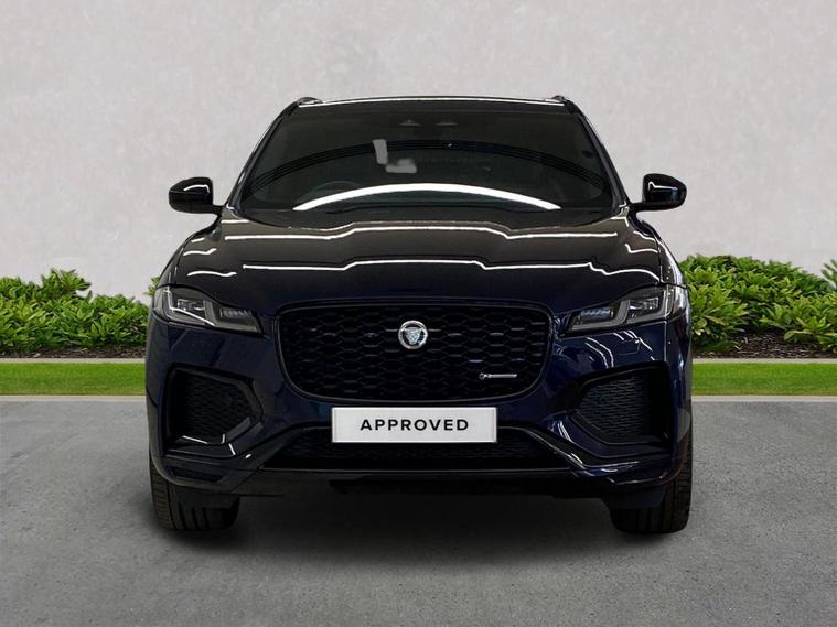 This 2024 Jaguar F-PACE D200 R-Dynamic HSE Black is a superb example, having had only one owner since new. This striking all wheel drive SUV boasts a powerful yet efficient 2.0 litre diesel engine, meeting Euro 6 emissions standards. Inside, you'll find luxurious 16 way heated and ventilated electric memory front seats with massage function and two way manual headrests, complemented by a 2 zone climate control system. Connectivity is seamless with Apple CarPlay, and convenience is enhanced by keyless entry and blind spot assist. Experience impressive performance with an acceleration of 0 to 60 miles per hour in just 7.8 seconds, while achieving an excellent fuel economy of 43 miles per gallon, demonstrating its efficiency compared to similar vehicles. The F-PACE also offers substantial boot space, making it a practical choice for families and adventurers alike. With a towing weight of 2400 kg, this R-Dynamic HSE Black variant is as capable as it is stylish.
