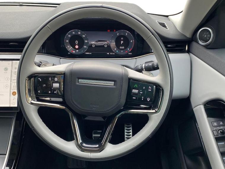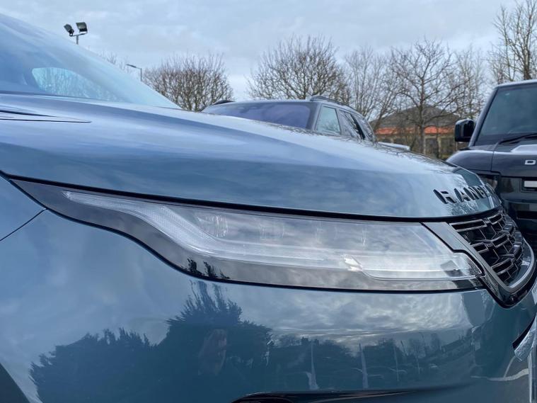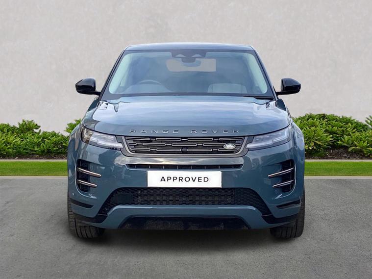 This 2024 Range Rover Evoque D200 Dynamic HSE is a Land Rover manufacturer approved vehicle with a full service history and only one owner from new. This stylish SUV features a powerful 2.0L Euro 6 diesel engine paired with a Four Wheel Drive system, ensuring capability in all conditions. Inside, you'll find comfortable heated front seats and a luxurious Meridian sound system for an enhanced driving experience. The Dynamic HSE trim level adds a touch of sophistication, while practical features like automatic headlights, a fixed panoramic roof with a powered blind, Heated Steering Wheel, Privacy Glass and a Secure Tracker Pro contribute to its appeal. Experience impressive performance with an acceleration of 0-60mph in just 7.9 seconds, demonstrating its responsiveness. This Evoque also boasts a fuel economy of 43 mpg, making it an efficient choice for your journeys. The inclusion of an electrically deployable towbar and generous boot space further highlight its versatility, offering practical solutions for both leisure and everyday needs, setting it apart from other vehicles in its class.