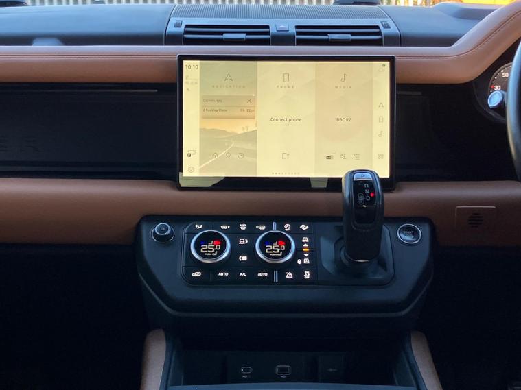 Lookers Jaguar Land Rover Buckinghamshire is delighted to present this stunning example of a Defender. This vehicle is in lovely condition, finished in the stunning Santorini Black bodywork and Full Caraway and Ebony Leather interior. This vehicle comes with 22 Inch Alloy Wheels, Sliding Panoramic Glass Roof, Heated Seats, Climate Control, LED Headlights, Tinted Windows, Power-folding Mirrors, Heated Windscreen for the frosty mornings, Heated Steering Wheel, Rear Camera, Apple/Android Carplay and has gone through our Land Rover/Jaguar 165-point inspection and independent mileage & history check to give you absolute confidence and peace of mind that we are delivering the highest possible standard of vehicle. We have a professional, expert part-exchange service that can cater to your needs when looking to trade in your existing vehicle. Our dedicated aftersales team will also be there to help whenever needed after you make your purchase. This vehicle is available through finance, we offer Click & Collect or Home Delivery - you can reserve online today on our website or come and visit our showroom. If you have any questions or would like to make an enquiry about this vehicle, please don’t hesitate to give us a call or send us an email and we will be happy to help. At Jaguar Land Rover Buckinghamshire, we are part of the Lookers family which has a rich 114-year history, we believe in being there 'for you, for life.' Our staff are fully dedicated, trained and experienced in their fields and are committed to providing an excellent service to you to ensure you find your ideal next car.