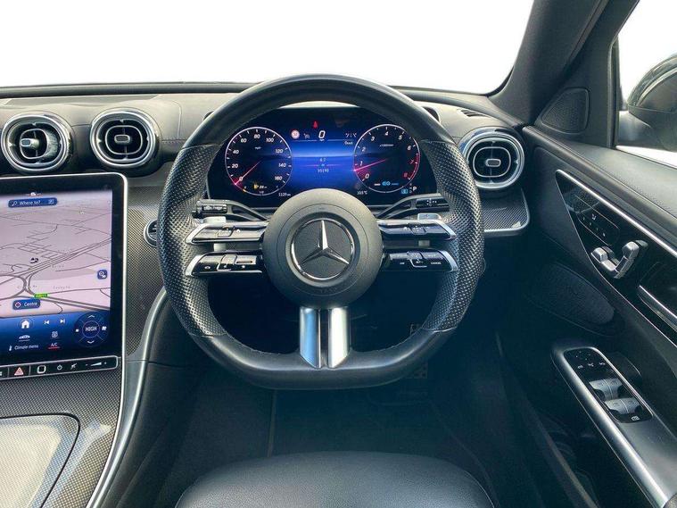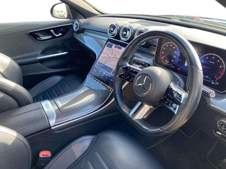 Experience the perfect blend of efficiency, luxury, and athletic design with this stunning 2022 Mercedes-Benz C200h MHEV AMG Line (Premium) Estate. Finished to the highest standards and backed by the reassurance of the Mercedes-Benz Approved Used Programme, this C-Class delivers sophistication, practicality, and cutting-edge hybrid technology. Engine: 1.5-litre Petrol Mild Hybrid (MHEV) Transmission: G-Tronic+ Automatic Drive: Rear-Wheel Drive Emissions: Euro 6 (s/s) compliant Body Style: Estate (5-door) Trim: AMG Line (Premium) Exterior Highlights AMG Line styling with dynamic body enhancements 18" AMG alloy wheels LED High-Performance headlamps Privacy glass and chrome exterior detailing Hands-free EASY-PACK powered tailgate Premium interior with ARTICO leather and AMG sports seats 11.9" central touchscreen with MBUX infotainment Ambient lighting with 64 colour options Heated front seats Dual-zone climate control MBUX Navigation with augmented reality Smartphone integration (Apple CarPlay & Android Auto) Reversing camera with parking sensors Keyless-Go comfort package The C200h’s mild-hybrid system enhances responsiveness while improving fuel efficiency. The 224 PS output delivers smooth, confident performance, while the G-Tronic+ automatic gearbox ensures seamless gear changes for a refined driving experience. Mercedes-Benz Approved Used Benefits Minimum 12-month unlimited mileage warranty Comprehensive multi-point inspection by Mercedes-Benz technicians 12-month roadside assistance Full vehicle history and mileage checks Flexible finance options available