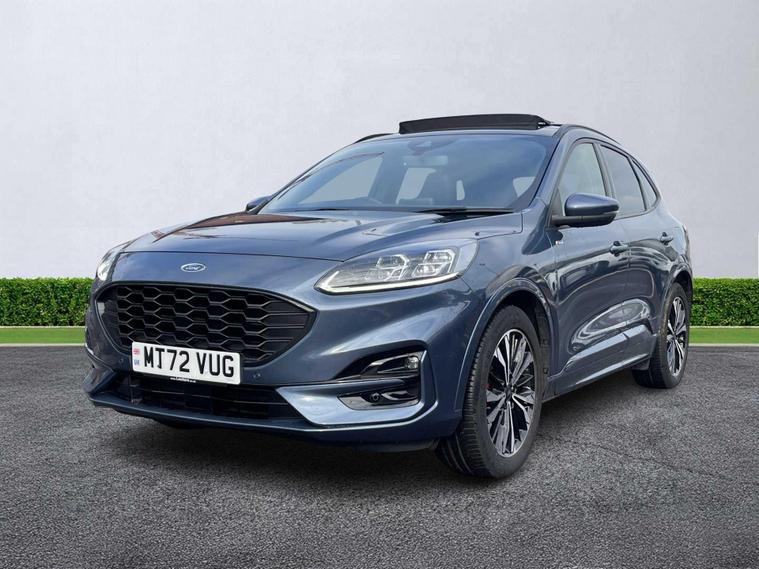 Ford Kuga 2.5h Duratec ST-Line X Edition Hybrid CVT (190ps) – 72 Plate – Blue – 22, 000 Miles A fantastic example of the sporty yet efficient Ford Kuga ST-Line X Edition Hybrid, finished in striking blue and covered just 22, 000 miles. Combining dynamic ST-Line styling with smooth hybrid performance, this is a superb modern family SUV. Powered by the 2.5-litre Duratec petrol hybrid engine (190ps) paired with a seamless CVT automatic gearbox, it delivers strong performance with impressive fuel economy — perfect for both urban driving and motorway cruising. Being a self-charging hybrid, there’s no need to plug in. The ST-Line X Edition sits high in the range and comes packed with premium features. Key features include: 2.5 Hybrid Petrol (190ps) CVT Automatic transmission ST-Line body styling & sports suspension Partial leather / suede sports seats Heated front seats Heated steering wheel 12.3” digital instrument cluster Large touchscreen infotainment system Satellite navigation Apple CarPlay & Android Auto Reversing camera Front & rear parking sensors Power tailgate Keyless entry & start Dual-zone climate control LED headlights 19” alloy wheels Adaptive cruise control ISOFIX mounting points The Kuga offers a raised driving position, spacious interior and generous boot space, making it an ideal choice for families or anyone wanting SUV practicality with sporty looks. With low mileage, high specification and desirable ST-Line X Edition trim, this is an excellent example not to be missed. Available now – contact us today to arrange your viewing or test drive.