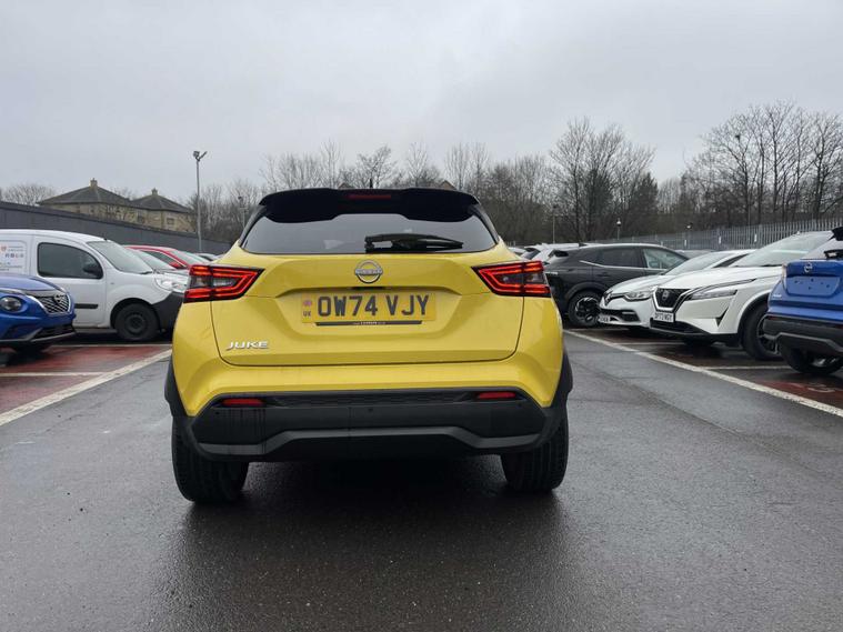 Nissan JUKE 1.0 DIG-T Tekna DCT Auto – 74 Plate – Yellow – Under 4, 000 Miles Stand out from the crowd with this stunning Nissan JUKE Tekna, finished in eye-catching yellow and covered less than 4, 000 miles. With delivery-level mileage and the latest 74 registration, this is an excellent opportunity to secure a nearly-new car without the brand-new price tag. Powered by the efficient 1.0 DIG-T 114ps petrol engine paired with the smooth DCT automatic gearbox, it delivers effortless driving with impressive fuel economy. Euro 6 compliant and ULEZ friendly. As the range-topping Tekna, this model comes fully loaded with premium features. Key features include: 1.0 DIG-T Petrol (114ps) DCT Automatic transmission Full leather interior Heated front seats Heated steering wheel BOSE Personal Plus sound system Around View Monitor (360° camera) Front & rear parking sensors NissanConnect touchscreen with satellite navigation Apple CarPlay & Android Auto Digital driver display Adaptive cruise control Blind spot intervention Lane keep assist LED headlights Keyless entry & start 19” alloy wheels Privacy glass ISOFIX child seat mounting points The latest-generation JUKE combines bold styling, a raised driving position and advanced safety technology, making it a superb compact SUV choice. With ultra-low mileage, automatic transmission and top specification, this example won’t hang around. Available now – enquire today to arrange your viewing or secure it before it’s gone.
