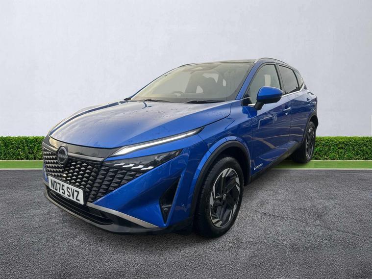 Now available at Lookers, this 2025 Nissan QASHQAI E-POWER 1.5 HEV 190 N-Connecta PNRF offers the ideal blend of efficiency, refinement and premium technology. The E-POWER system delivers smooth, responsive electric-like driving with no need to plug in, using the petrol engine solely to charge the battery, resulting in impressive fuel economy and instant torque. Finished in the sought-after N-Connecta specification with the panoramic roof upgrade, it comes packed with features including the stunning glass roof that brightens the cabin, NissanConnect touchscreen with Apple CarPlay and Android Auto, 360° Around View Monitor, keyless entry, dual-zone climate control, front and rear parking sensors, wireless phone charging and full LED lighting. Inside, the Qashqai feels modern and refined with high-quality materials, supportive seating and excellent practicality for everyday family use. This model has passed all manufacturer-approved checks, is fully HPI clear and has been professionally valeted to showroom condition. We offer nationwide delivery, competitive finance packages and the option to reserve the vehicle with a fully refundable £250 deposit. A perfect choice if you want the comfort and space of an SUV with the smoothness and efficiency of Nissan’s latest E-POWER hybrid technology.