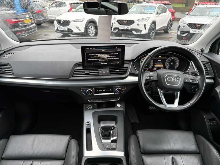 Now available at Lookers, this premium 2021 Audi Q5 S Line Edition 1 50 TFSI e Quattro combines electrified efficiency, luxury comfort, and confident all-wheel-drive performance. Featuring Audi’s advanced plug-in hybrid system, the 50 TFSI e delivers smooth electric driving for shorter trips and strong petrol-hybrid power for longer journeys, all supported by the legendary Quattro drivetrain for exceptional grip and stability in all conditions. The S Line Edition 1 trim enhances the Q5 with a sporty, high-end finish including striking 20-inch alloy wheels, LED headlights, privacy glass, dynamic indicators, and distinctive S Line styling that gives the car a bold, sophisticated road presence. Inside, the cabin showcases Audi’s renowned build quality with finely crafted materials, S Line sport seats, ambient interior lighting, tri-zone climate control, and a spacious, refined layout designed for total driving comfort. The advanced MMI infotainment system with a large central display includes Apple CarPlay, Android Auto, Bluetooth, navigation, voice control, Audi Virtual Cockpit, and seamless smartphone integration, ensuring every journey is connected and enjoyable. Front and rear parking sensors, a rear-view camera, cruise control, selectable driving modes, and keyless start add further convenience. Safety is prioritised with a full suite of driver-assistance systems including pre-sense collision protection, lane departure warning, stability control, and multiple advanced monitoring features. This Q5 comes with an excellent service history, maintained on 24/10/2022, 22/08/2023, 12/08/2024, and 15/08/2025, demonstrating consistent care throughout its life. It has also been fully inspected by our trained technicians, is HPI clear, professionally valeted, and ready for its next owner with the reassurance expected from the Lookers Approved standard.