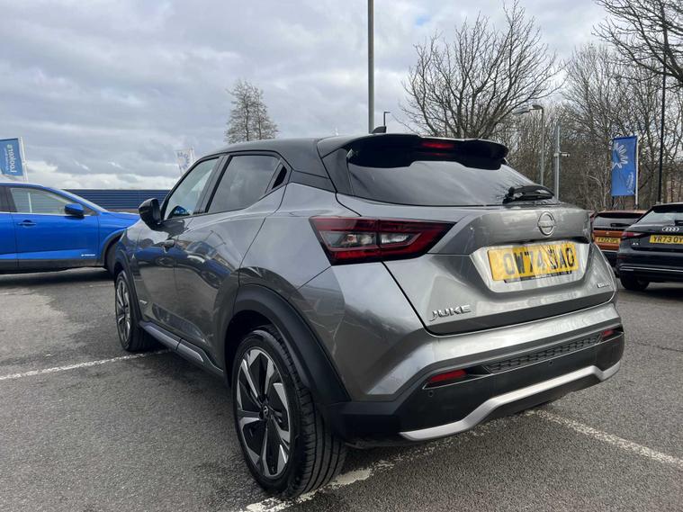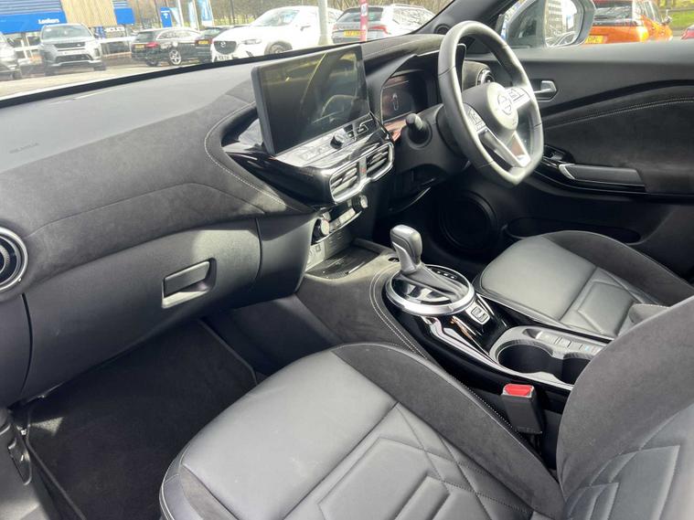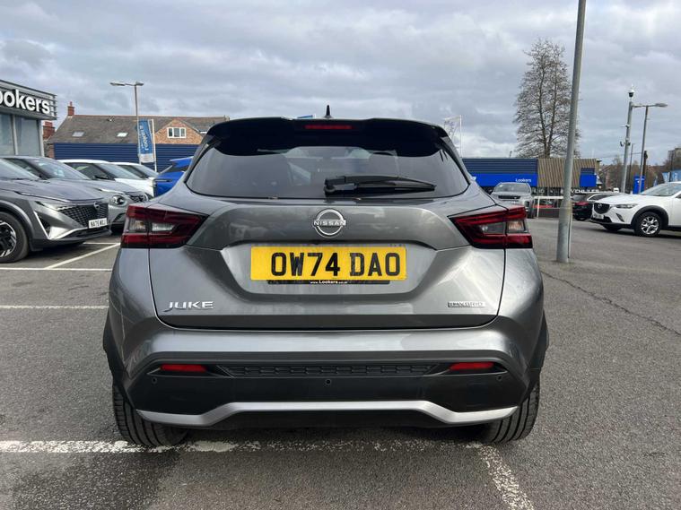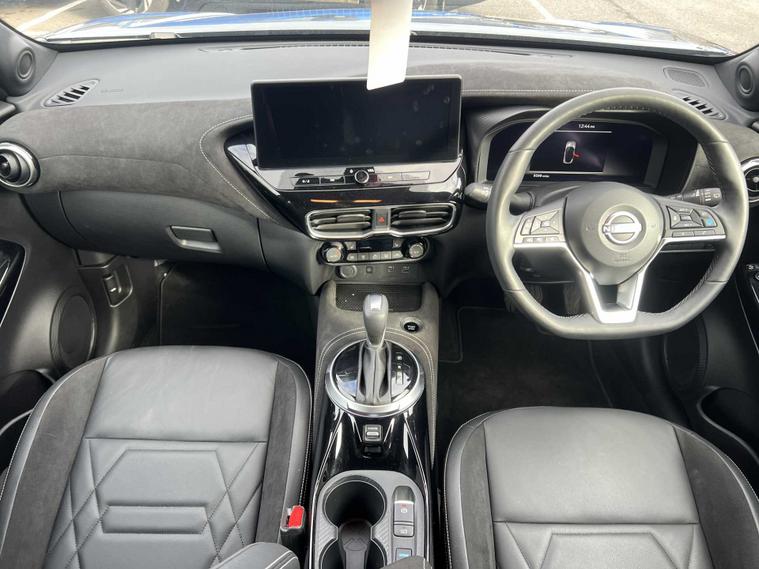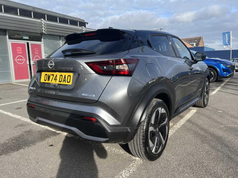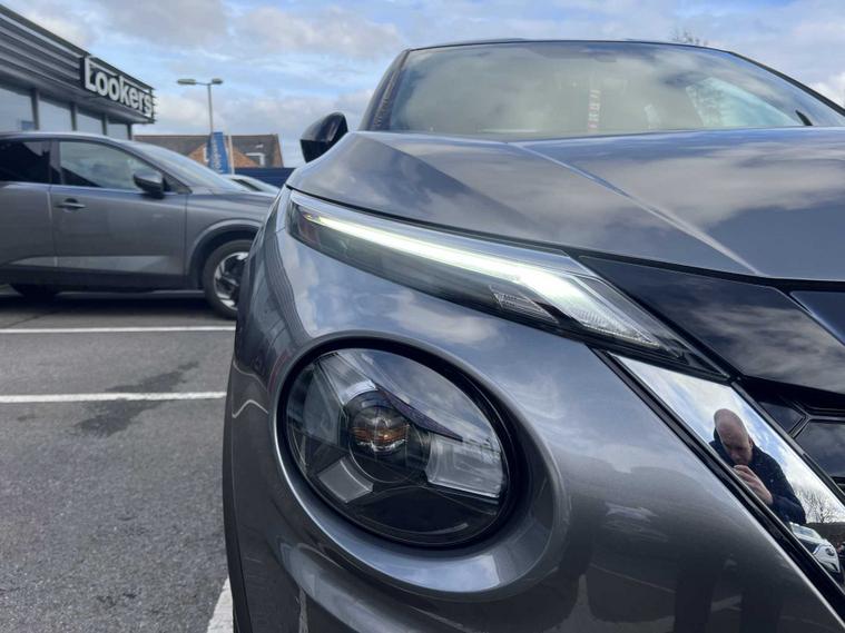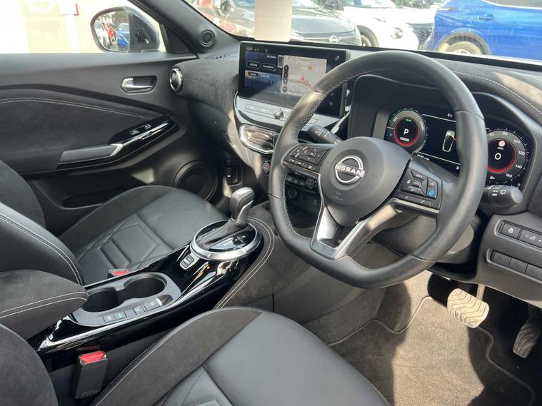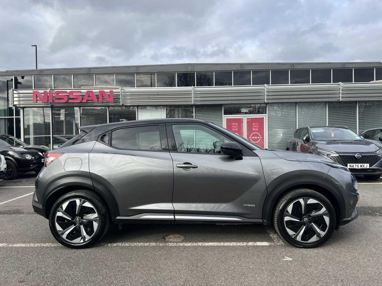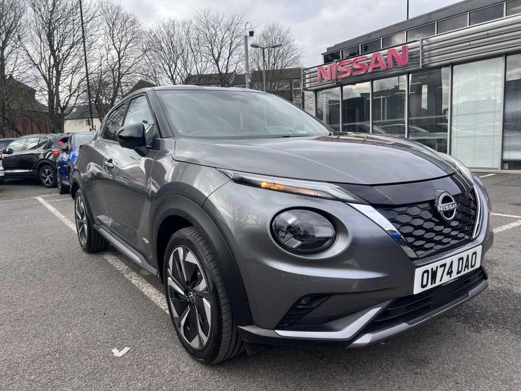 ow available at Lookers, this well-equipped 2024 Nissan Juke Tekna+ HEV CVT offers a superb blend of hybrid efficiency, premium comfort and advanced technology, making it an ideal choice for drivers seeking a stylish and economical compact SUV. Powered by Nissan’s self-charging hybrid system and paired with a smooth automatic CVT transmission, it delivers refined performance, excellent fuel economy and a seamless driving experience both in town and on the motorway. The Tekna+ trim sits at the top of the Juke range and provides an impressive level of specification, including striking alloy wheels, full LED headlights, contrasting exterior styling details and Nissan’s bold, coupe-inspired SUV design that gives it a confident presence on the road. Inside, the cabin feels modern and high quality, featuring heated front seats, a heated steering wheel, part-leather upholstery and a fully digital driver display. The touchscreen infotainment system includes satellite navigation, Apple CarPlay, Android Auto, Bluetooth connectivity, DAB radio and a premium Bose sound system for an enhanced audio experience. Additional convenience and safety features include keyless entry and start, dual-zone climate control, adaptive cruise control, an Around View Monitor with 360-degree cameras, blind spot monitoring, lane keep assist, intelligent emergency braking and multiple advanced driver-assistance systems to ensure every journey feels controlled, safe and relaxed. This Juke has been maintained in line with manufacturer requirements, with a service completed on 06/01/2026, demonstrating ongoing care. As part of the Lookers Approved programme, it has also undergone a comprehensive multi-point inspection by our trained technicians to ensure it meets the high standards expected from our used vehicles. It is HPI clear, professionally valeted and prepared for its next owner with the reassurance of minimum MOT and service standards.