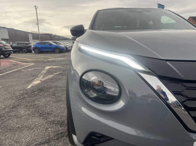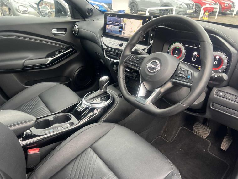 Now available at Lookers Nissan Newcastle, this 2024 Nissan Juke Tekna HEV CVT offers an impressive blend of modern design, hybrid efficiency, and premium technology, making it a superb choice for drivers seeking a stylish and practical compact SUV. Powered by Nissan’s advanced self-charging hybrid system paired with a smooth CVT automatic transmission, it delivers refined acceleration, strong everyday performance and excellent fuel economy without the need to plug in — ideal for both city driving and longer motorway journeys. The Tekna trim provides a high level of standard equipment, combining comfort, convenience and connectivity. Externally, this Juke features bold body lines, striking LED headlights, stylish alloy wheels and Nissan’s distinctive SUV silhouette that gives it a confident road presence. Inside, the cabin is modern and well appointed, offering comfortable seating, quality materials and a thoughtful layout designed around everyday usability. The advanced NissanConnect touchscreen infotainment system includes built-in satellite navigation, Apple CarPlay, Android Auto, Bluetooth connectivity and DAB radio, keeping you connected and entertained on every journey. Additional features such as dual-zone climate control, keyless entry and start, cruise control and a reversing camera with front and rear parking sensors further enhance convenience and ease of use. Safety is a strong focus, with Nissan Intelligent Mobility technologies including intelligent emergency braking, lane keep assist, blind spot warning and traffic sign recognition working together to give you confidence behind the wheel. As part of the Lookers Approved programme, this 2024 Nissan Juke Tekna HEV CVT has been professionally prepared and undergone a comprehensive multi-point inspection by our trained technicians to ensure it meets our high standards. It is HPI clear, professionally valeted and supplied with minimum MOT and service standards for complete peace of mind.