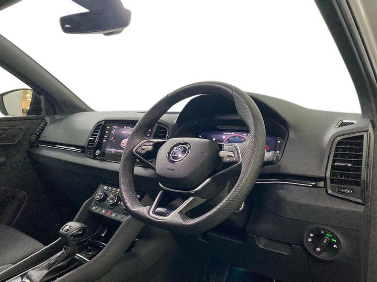Skoda Guildford are excited to offer this beautiful Meteor Grey Karoq with Black upholstery. Lets take a look at what additional options this Karoq has: A Škoda Rear View Camera is an integrated accessory that provides a real-time, wide-angle view of the area behind the vehicle on the car's infotainment system display to help drivers with safer and easier reversing and manoeuvring. It typically activates automatically in reverse gear, displays guide lines, and is often fitted discreetly into the boot release handle, sometimes with its own cleaning system. Skoda front and rear parking sensors are a driver-assist system that uses ultrasonic sensors on the front and rear bumpers to detect obstacles and help with parking. The system provides both audible beeps and on-screen visual warnings that change based on proximity to an object, making parking in tight spaces easier and safer. We would love to invite you down for an appointment to view this Karoq. Please give us a call on 01483334571 or send an enquiry in. We can send across a personalised video of the vehicle. We look forward to welcoming you soon to Skoda Guildford.