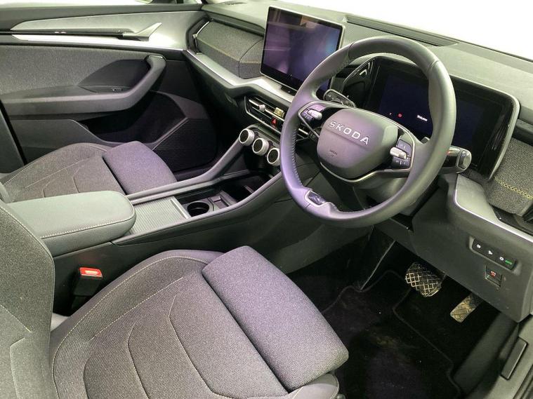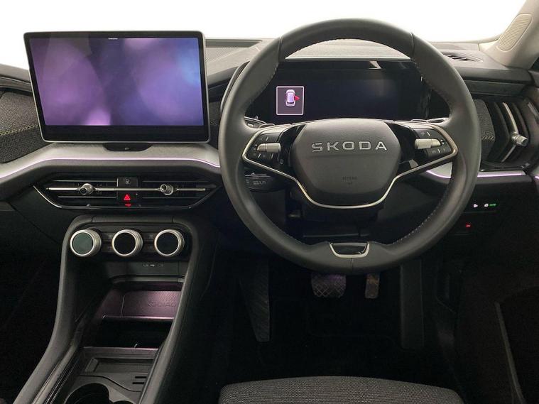 Skoda Guildford are excited to offer this beautiful Black Magic Kodiaq with Black upholstery. With just under 8000 miles, this Kodiaq is a great example. With this being the facelifted Kodiaq, the SE comes with a fantastic level of specification as standard. Lets take a look at what additional options this Kodiaq has: Skoda door mirrors with the features you listed are highly advanced exterior mirrors that offer convenience and enhanced visibility. Heated and electric adjustable features allow for clear visibility in all weather, while auto-folding and auto-dimming functionalities automatically adjust the mirrors for your convenience and to prevent dazzling from other vehicles' headlights. The memory function stores your preferred mirror settings, linking them to your vehicle's seat memory, and ensures they return to your personalized position each time you drive. Three-zone splits up the driver and front passenger zones, and then adds a separate third zone for the rear seats. A Škoda Rear View Camera is an integrated accessory that provides a real-time, wide-angle view of the area behind the vehicle on the car's infotainment system display to help drivers with safer and easier reversing and manoeuvring. It typically activates automatically in reverse gear, displays guide lines, and is often fitted discreetly into the boot release handle, sometimes with its own cleaning system. Škoda's Dynamic headlight range control with cornering light (AFS 1) is an Adaptive Frontlight System (AFS) that automatically adjusts the headlights' direction and range based on driving speed, steering angle, and even weather conditions, improving visibility, safety, and reducing blind spots, especially on winding roads and in poor lighting conditions. The "1" in AFS 1 likely refers to a specific generation or version of the system, while the cornering light function specifically activates additional lighting when turning at low speeds to illuminate tight bends and junctions. We would love to invite you down for an appointment to view this Kodiaq. Please give us a call on 01483334571 or send an enquiry in. We can send across a personalised video of the vehicle. We look forward to welcoming you soon to Skoda Guildford.