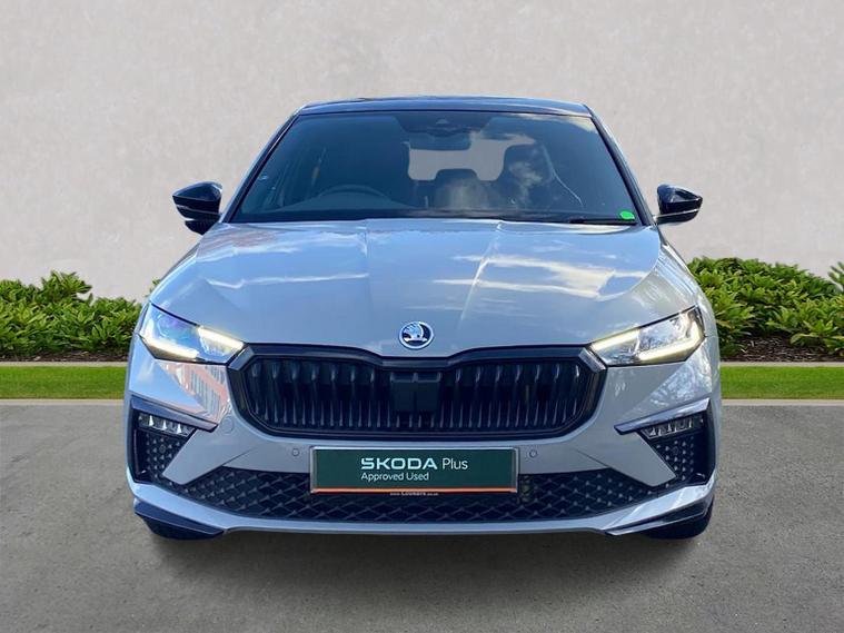 With an exceptionally low mileage of just 1172 miles for a 2025 model, this Skoda Scala TSI Monte Carlo Edition presents a remarkable opportunity. This Euro 6 compliant vehicle is a Skoda manufacturer approved Scala, featuring a responsive 1.0 litre petrol engine. It comes equipped with the Convenience Package, which includes keyless entry and front parking sensors, a fixed panoramic glass roof, and a rear view camera for effortless parking. Further enhancing your driving experience are the integrated Bluetooth system and automatic headlights activated by light and rain sensors. The Scala TSI Monte Carlo Edition excels with its impressive acceleration, reaching 0 to 60 miles per hour in just 9.8 seconds, demonstrating its spirited performance. Furthermore, its large boot space offers exceptional practicality, making it a superior choice for those needing ample storage. These highlights, combined with its comprehensive feature set and minimal mileage, set this Skoda Scala apart from other vehicles in its class.