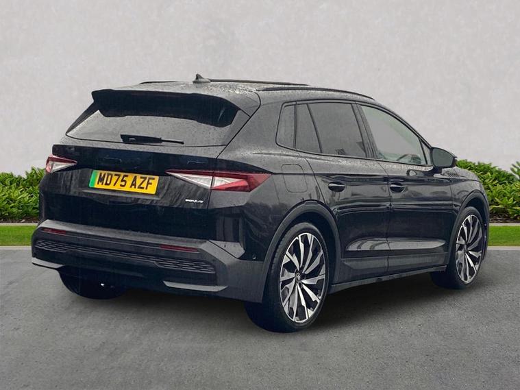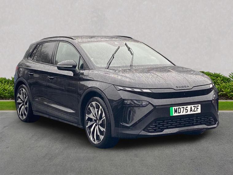 Finished in Black Magic Pearl Effect this Elroq SportLine 85 delivers impressive electric performance with 286 PS and a smooth single speed transmission offering strong acceleration and refined driving The SportLine design gives it a bold and athletic presence complemented by 21 inch Supernova black alloy wheels and premium styling throughout The Maxx Package adds a high level of technology and comfort including tri zone climate control head up display heated and electrically adjustable front seats with memory and massage function Canton sound system keyless entry and start electric boot with virtual pedal panoramic safety and convenience features such as full LED Matrix headlights area view camera adaptive lane assist park assist with remote parking and wireless charging With a spacious and well finished interior this Elroq is ideal for both everyday driving and longer journeys Test drives are available and you can also request a personalised video walkaround to view the vehicle in detail before visiting the dealership