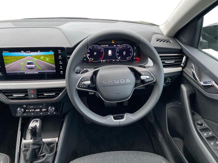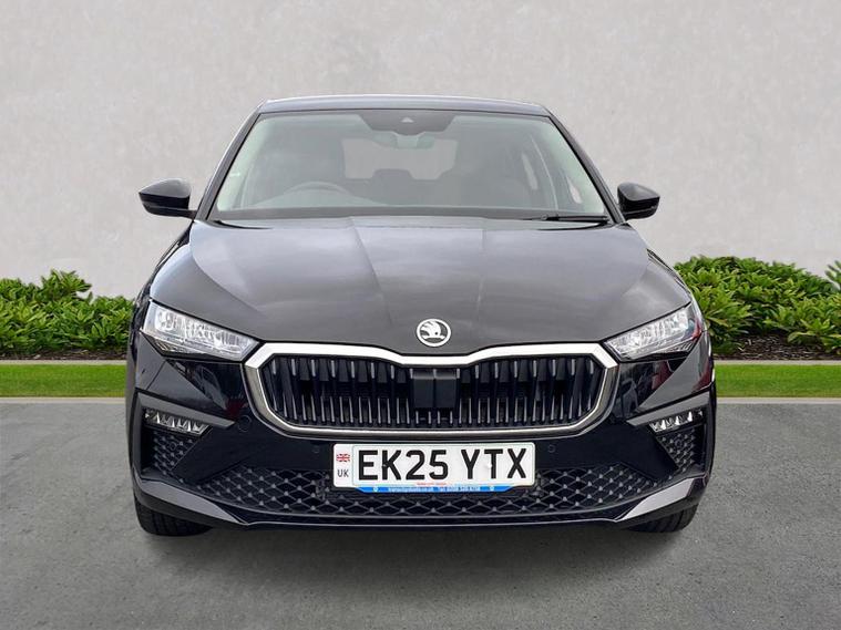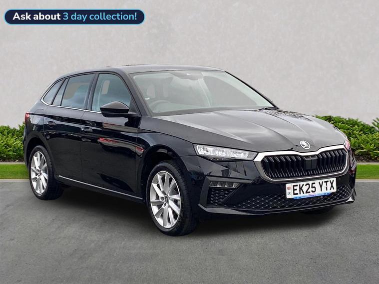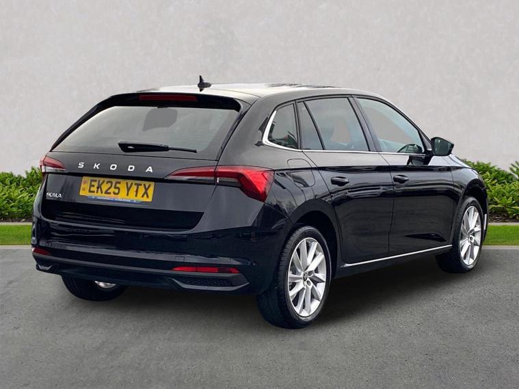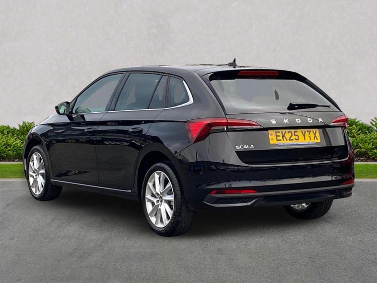 Finished in Black Magic Pearl Effect, this ŠKODA Scala SE L Edition 1.0 TSI DSG is a stylish and highly equipped hatchback that blends efficiency, technology and everyday comfort in a smart, practical package. It comes loaded with 9.2-inch satellite navigation, wireless SmartLink for Apple CarPlay and Android Auto, Bluetooth, DAB radio, web radio, USB connectivity and an 8-speaker sound system, alongside a 10.25-inch Virtual Cockpit, voice control, ambient interior lighting and Care Connect with Infotainment Online services. Comfort is enhanced by heated front seats, dual-zone climate functionality, keyless entry and start, rain and light sensors, auto-dimming rear-view mirror and a rear centre armrest. Driver assistance systems include front and rear parking sensors, rear-view camera, drive mode select, ECO function, tyre pressure monitoring, washer fluid level indicator and full LED rear lights with dynamic indicators. Safety is covered by an alarm system with interior monitoring, ISOFIX child seat mounting points and multiple airbags for added peace of mind. Exterior highlights include 17-inch Stratos alloy wheels, privacy glass, chrome window surrounds, electrically folding and heated door mirrors, front fog lights with cornering function and a sleek, modern finish. Test drives are welcome, a personalised walk-around video can be provided on request and home delivery is available for added convenience. Competitive finance packages are also available — speak to the team today for a tailored quotation to suit your budget. Contact us now to arrange your viewing or reserve this Scala.