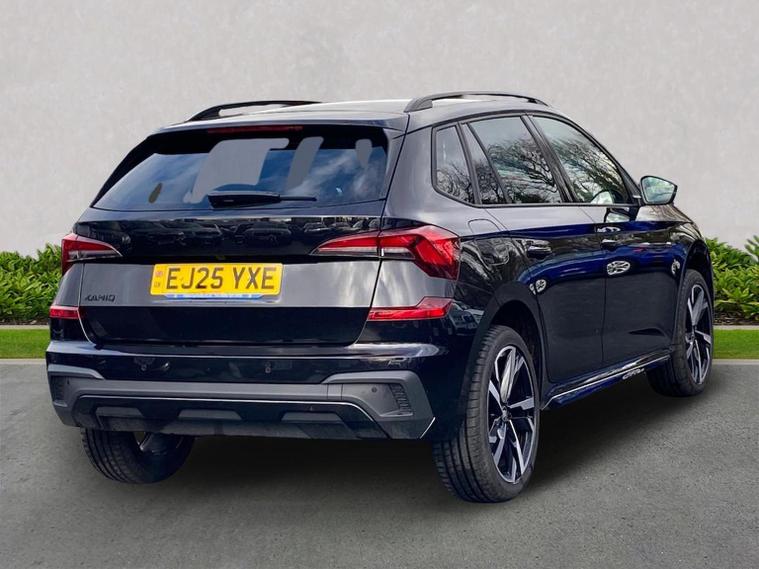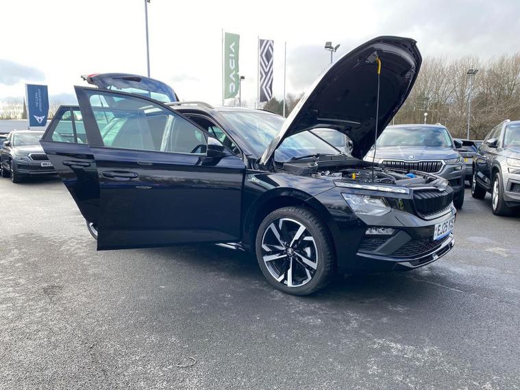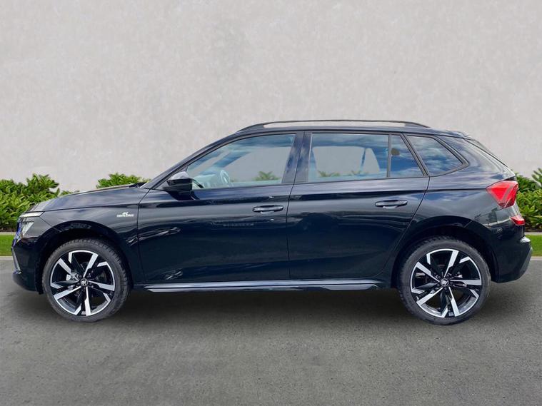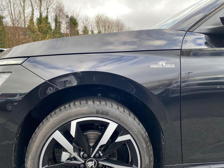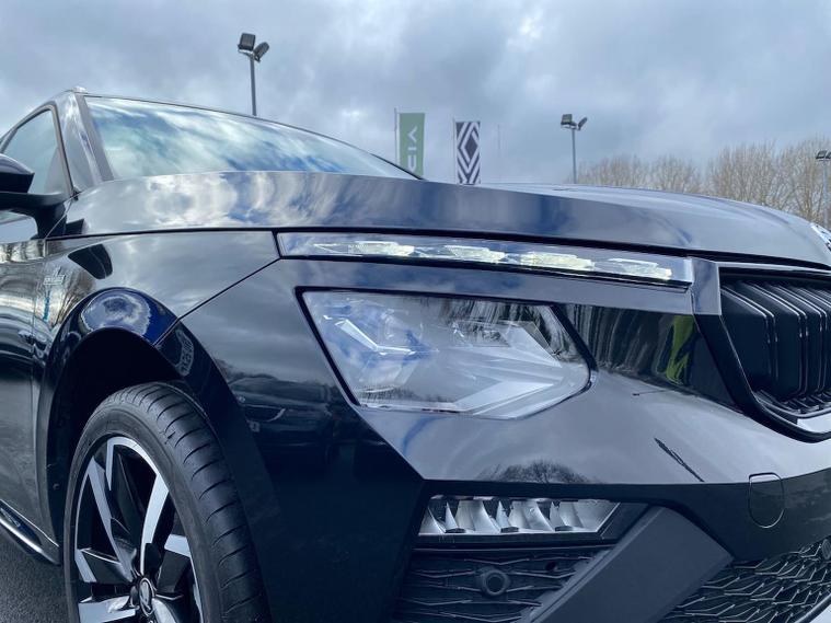 Finished in Black Magic Pearl Effect, this ŠKODA Kamiq Monte Carlo Edition 1.5 TSI DSG delivers sporty styling, strong performance and an excellent level of equipment in a compact and versatile SUV package. It features satellite navigation, wireless Apple CarPlay and Android Auto, wireless phone charging, USB-C connectivity, digital displays and an intuitive infotainment system to keep you connected on every journey. Inside, the Monte Carlo cabin is enhanced by heated sports seats, a heated leather multifunction steering wheel with DSG paddles, keyless entry and start, a smart centre console and premium trim details that give the interior a dynamic, high-quality feel. Driver convenience and safety are well covered with adaptive cruise control with follow-to-stop, front assist with emergency braking, front and rear parking sensors, rear-view camera, tyre pressure monitoring, washer-fluid indicator and a full alarm system for added reassurance. Test drives are welcome, a personalised walk-around video can be provided on request and home delivery is available for added convenience. Competitive finance packages are also available — speak to the team for a tailored quotation to suit your budget. Contact us today to arrange your viewing or reserve this vehicle.