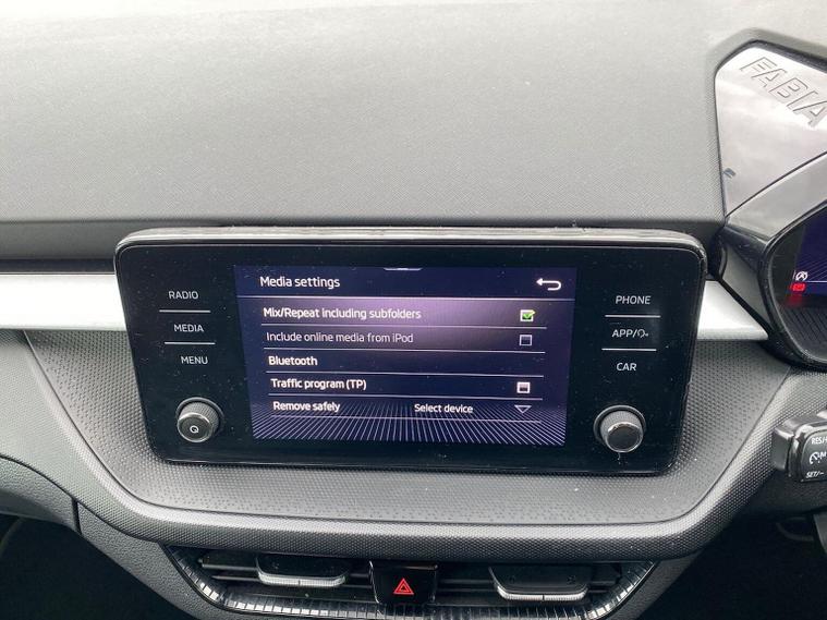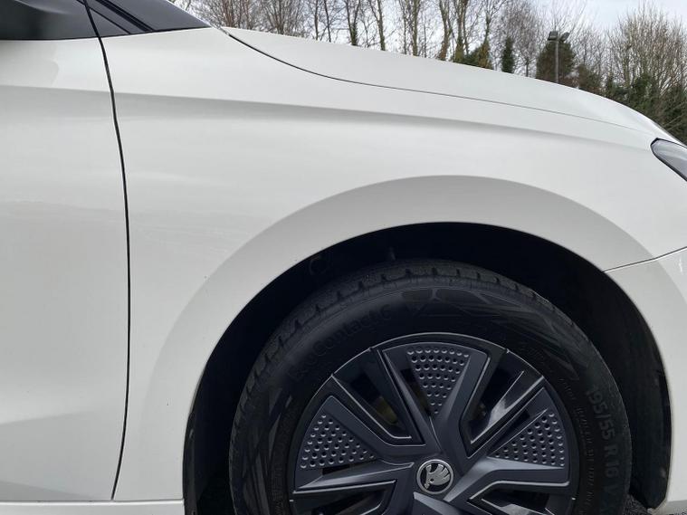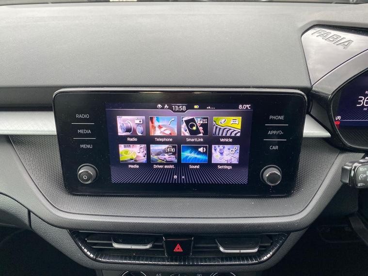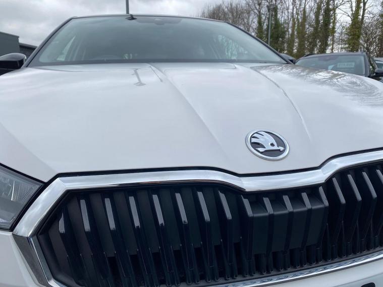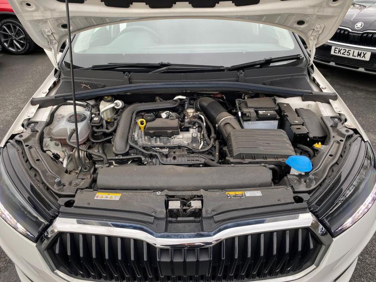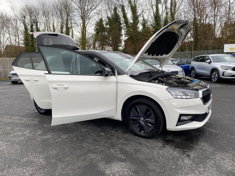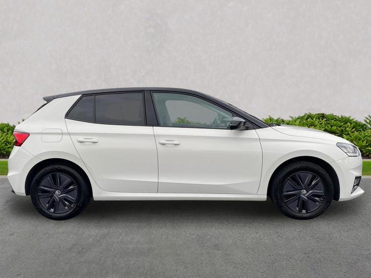Finished in Candy White with Black Magic Pearl Effect roof, this ŠKODA Fabia Colour Edition 1.0 TSI 95 PS Manual offers stylish looks, excellent efficiency and great everyday practicality. Specification includes an 8in touchscreen infotainment system with SmartLink for Apple CarPlay and Android Auto, Bluetooth, DAB radio, USB-C connectivity and a Virtual Cockpit display. The Colour Edition styling adds black exterior detailing, black alloy wheels, privacy glass and a contrasting roof for a sporty, modern appearance. Inside you’ll find air conditioning, a leather multifunction steering wheel, keyless start and practical boot space. Driver assistance and safety features include rear parking sensors, Front Assist, Lane Assist, driver alert, TPMS, ISOFIX child seat points, ESC and multiple airbags for added reassurance. Test drives welcome. Personalised walk-around video available on request. Home delivery available. Finance options available — speak to the team for a tailored quotation. Contact us today to arrange your viewing or reserve this vehicle.
