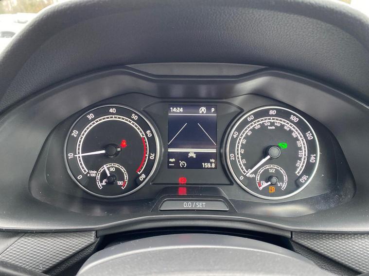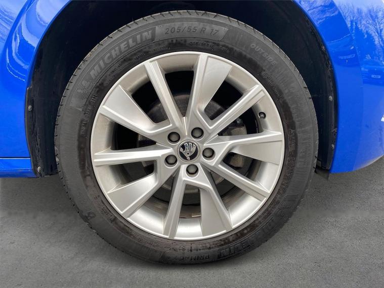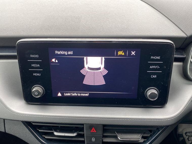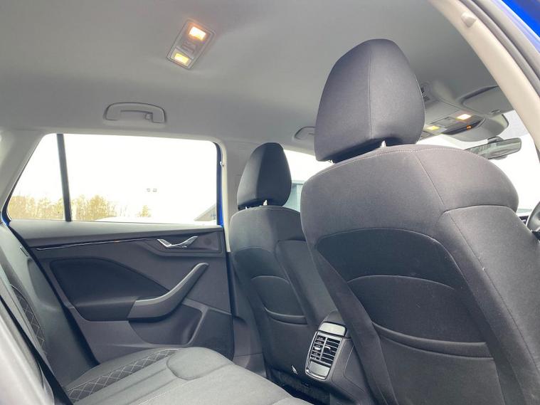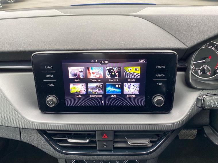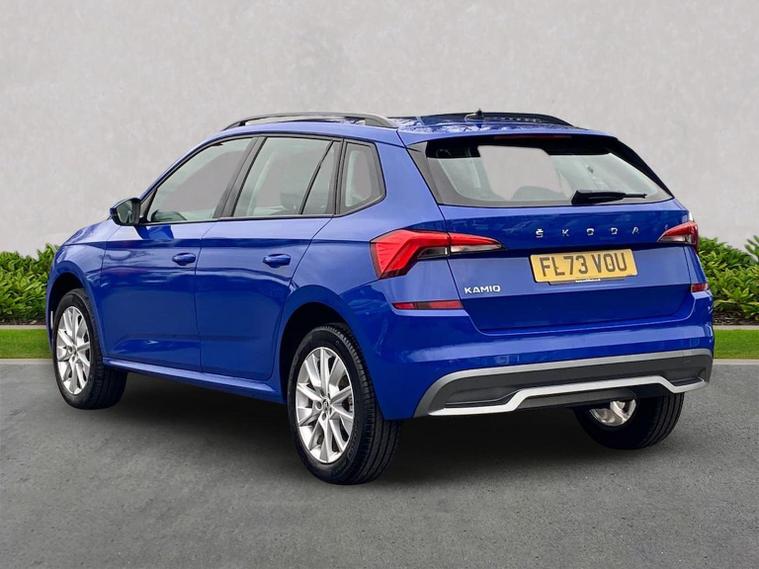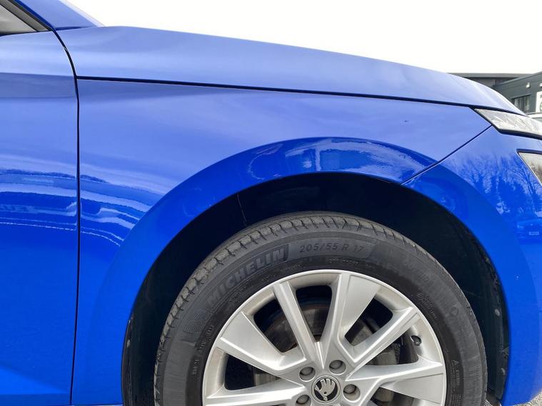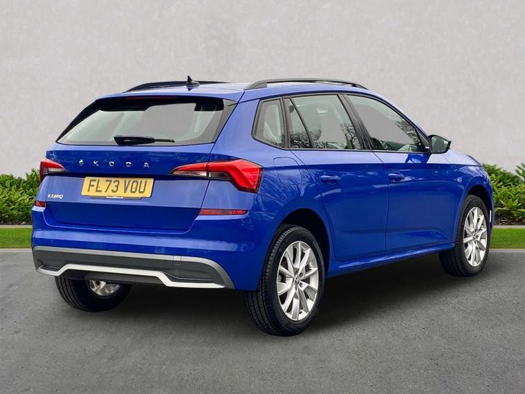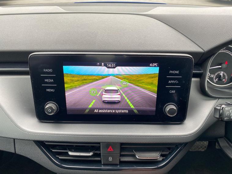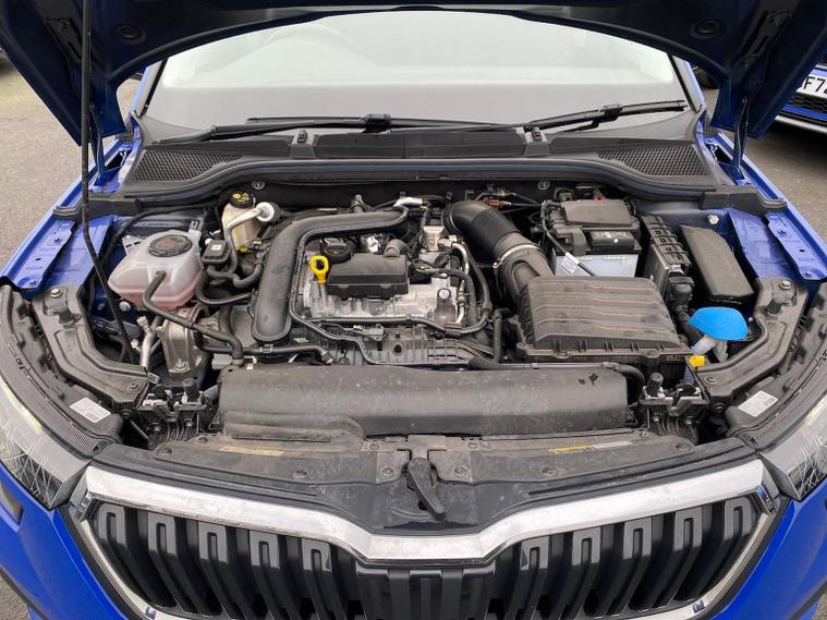 This Škoda Kamiq SE 1.0 TSI 110PS DSG in Energy Blue with a black interior and grey roof lining includes optional cooling shutters (S0M) and comes equipped with an 8" Bolero touchscreen, DAB radio, Bluetooth, wireless Smartlink, 8 speakers, USB-C ports, a 12V socket, cruise control, rear parking sensors, tyre pressure monitoring, Lane Assist, Front Assist, Hill Hold Control and a black and white trip computer. Exterior features include 17" Braga alloy wheels, black roof rails, electrically adjustable and heated door mirrors, body-coloured trim, chrome grille detailing, front and rear electric windows, heated rear screen, LED headlights, LED daytime running lights and LED rear lights. Inside it offers manual air conditioning, a height-adjustable driver’s seat with lumbar support, a leather multifunction steering wheel, front centre armrest, illuminated glovebox, reading lights front and rear, overhead glasses holder, sun visor illumination for the passenger, textile floor mats, a third rear headrest, and the umbrella and ice scraper. Safety equipment includes ABS, front, side and curtain airbags, passenger airbag deactivation, alarm with SAFE locking, ISOFIX on front passenger and outer rear seats with top tether, seatbelt reminders, electronic immobiliser and remote central locking with two keys. We offer in-person appointments, personal video appointments, test drives and finance options.