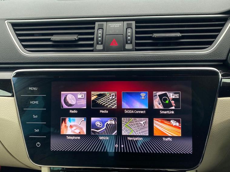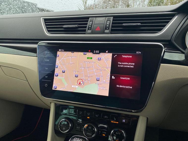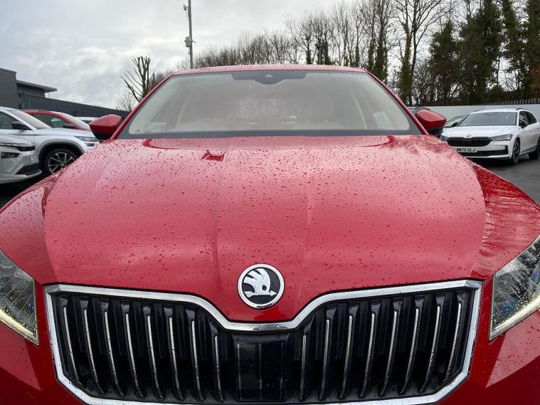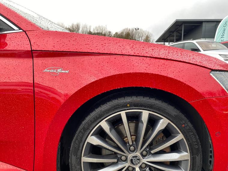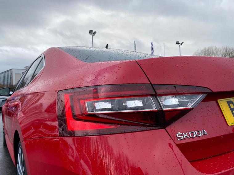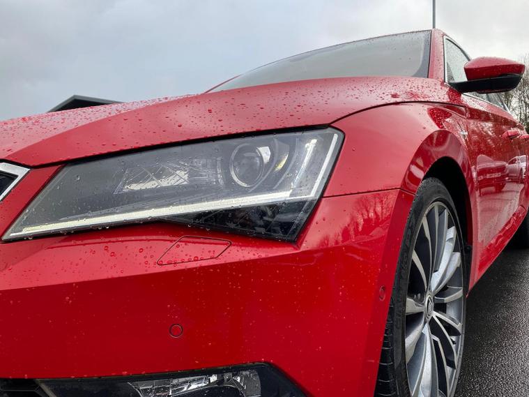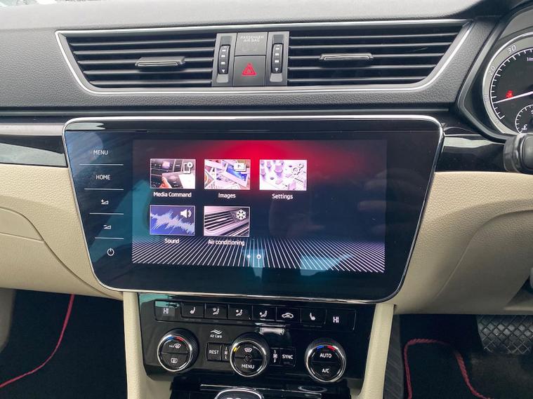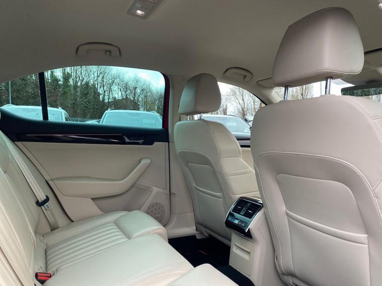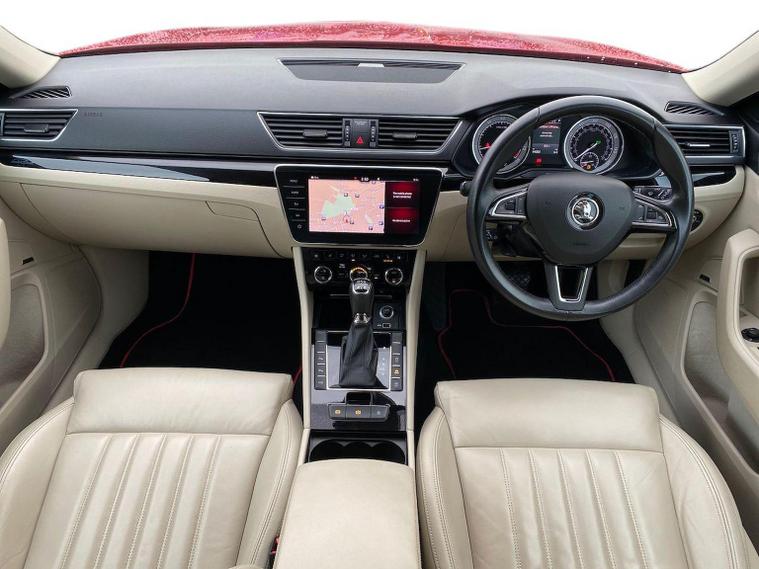 This Škoda Superb L&K 2.0 TSI 280PS 4x4 DSG in Velvet Red Metallic with Emotion Onyx interior includes optional 19" Trinity anthracite alloy wheels, a temporary space-saver spare wheel with tool kit and jack, and a rear window wiper. As the L&K model it comes highly equipped with the Columbus satellite navigation system, Canton sound system, Bolero infotainment, DAB radio, Bluetooth, SmartLink Plus, wireless phone charging, Wi-Fi, DVD drive, SD card reader, CareConnect with emergency call and in-car voice enhancement. Driver assistance features include Adaptive Cruise Control, Dynamic Chassis Control, Park Assist, front and rear parking sensors, rear view camera, Blind Spot Detection, Lane Assist, TPMS and Driver Fatigue Sensor. Exterior features include heated, folding and memory door mirrors, privacy glass, chrome grille, heated windscreen, 18" Pegasus alloy wheels (with space saver option fitted), and electric tailgate with virtual pedal. Inside it offers electrically adjustable heated and ventilated front seats, heated rear seats, tri-zone climate control, a heated multifunction leather steering wheel, piano black trim, LED interior lighting, ambient lighting, auto-dimming mirror, illuminated and cooled glovebox, removable LED boot lamp, rear armrest, umbrellas in both front doors, removable parcel shelf, split rear seats, textile floor mats and interior storage enhancements. Safety equipment includes seven airbags including driver’s knee airbag, ESC, Hill Hold Control, XDS+, alarm with interior monitoring, keyless entry and start with SAFE locking and ISOFIX on the outer rear seats. We offer in-person appointments, personal video appointments, test drives and finance options.