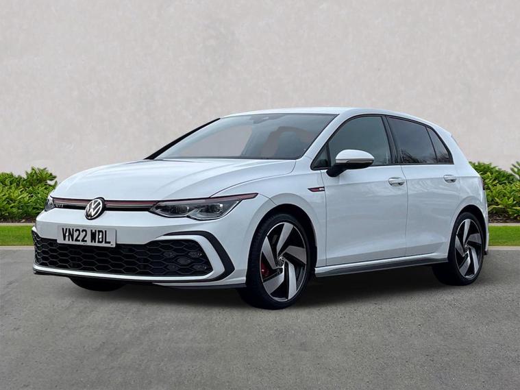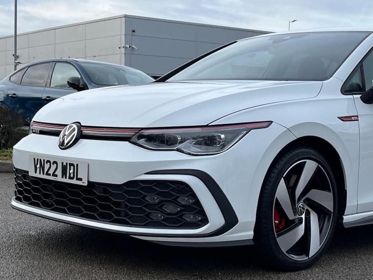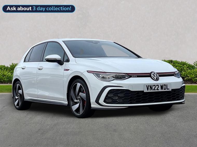 Viewing available 7 days a week at Lookers Birmingham. We have this astonishing Volkswagen Golf GTI, with just 21, 276 miles and drenched in the pearlescent paintwork known as Oryx White. Sitting proudly on sharp 18-inch diamond-cut alloy wheels, it delivers that unmistakable GTI presence from every angle. With one owner and a full service history, this example has been cared for exactly as it should be. We have also serviced it here at Lookers Birmingham, meaning it’s fully prepared and ready for its new owner. Powered by a punchy 2.0 TSI petrol engine producing an impressive 245 PS, this GTI offers rapid acceleration and exhilarating performance. Paired with the slick DSG automatic gearbox, gear changes are lightning-fast, providing both effortless cruising and engaging, sporty driving when you want it. The GTI’s legendary styling sets it apart instantly. Signature GTI design cues, bold alloy wheels, and sporty exterior detailing give it a purposeful, athletic stance, while subtle red accents and clean lines reinforce its performance pedigree. Inside, the cabin is unmistakably GTI. Supportive sports seats, performance-inspired trim, and a driver-focused layout create an engaging environment. The digital driver display and touchscreen infotainment system provide clear information and connectivity, while features such as dual-zone climate control and multifunction steering wheel add everyday comfort. Despite its sporting credentials, the Golf GTI remains impressively practical. The five-door layout offers easy access for passengers, a generous boot, and excellent ride comfort, making it perfectly suited to daily driving as well as spirited weekend runs. This car is Clean air zone compliant and does not attract any form of charge in Birmingham clean Air Zone. We understand that you rely on your car, so every car we sell is fully prepared to main dealer standard, for your peace of mind. All our vehicles pass a thorough 150 point check, are serviced and MOT’d as required by manufacturer trained technicians and are offered with up to 4 years warranty. Every car we sell is HPI clear so you can have the confidence that by choosing Lookers for your next purchase, you are choosing your perfect car. Competitive finance packages and nationwide delivery available. ESTABLISHED IN 1908, LOOKERS HAVE OVER 100 YEARS EXPERIENCE IN THE TRADE. BOOK YOUR TEST DRIVE NOW.