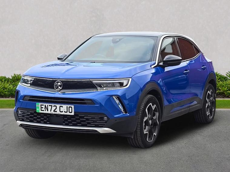The 2022 Vauxhall Mokka-e Ultimate (50kWh) is the top-tier trim of the all-electric compact SUV, offering a blend of advanced technology and premium styling. Core Specifications Powertrain: 100kW (136PS) electric motor with a 50kWh lithium-ion battery. Range: Up to 209 miles (WLTP), with a real-world range estimated around 160 miles depending on conditions. Performance: 0-62 mph in approximately 9.2 seconds with a top speed of 93 mph. Charging: Supports 100kW rapid charging (0-80% in , 30 minutes) and 7.4kW home charging (, 7.5 hours). Ultimate Trim Key Features The Ultimate trim includes all features from lower grades (Design and GS) plus several exclusive high-end upgrades: Infotainment: Multimedia Navi Pro with a 10-inch colour touchscreen, satellite navigation, and a 12-inch digital instrument cluster. Lighting: IntelliLux LED Matrix headlights with advanced forward lighting and automatic beam adjustment to avoid dazzling others. Interior Comfort: Alcantara seat trim, heated front seats, a heated flat-bottom leather steering wheel, and electronic climate control. Convenience: Keyless entry and start, wireless charger for mobile devices, and a moveable boot floor. Safety & Assistance: Active Drive Assist Plus (includes Adaptive Cruise Control and Lane Positioning Assistant), Panoramic Rear View Camera, and Advanced Park Assist. Styling: 18-inch bi-colour alloy wheels, a black roof, dark-tinted rear windows, and chrome-effect exterior trim inserts. Practicality Boot Space: 310 litres with seats up (standard for the electric version), expandable to 1, 060 litres with rear seats folded. Dimensions: Approximately 4.15m long and 1.79m wide, designed for agile urban driving.