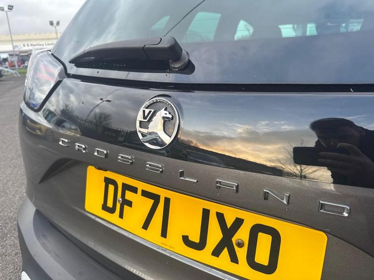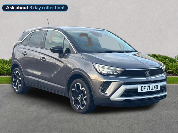 The 2021/2022 Vauxhall Crossland 1.2 Turbo Elite Edition is a 5-door petrol SUV featuring a 108 bhp engine (or 130 bhp depending on specific variant), 6-speed manual gearbox, and high-level features including Alcantara trim, 17-inch alloy wheels, front/rear parking sensors, a rearview camera, and LED headlights. It offers advanced safety features like side blind spot alert and lane departure warning. Key Features of the 1.2 Turbo Elite Edition: Performance: 1.2L Turbo engine, , 108 bhp, (205text{ Nm}) torque, approx. (10.5text{ seconds}) to (60text{ mph}).Interior & Comfort: Alcantara seat trim, dual-zone electronic climate control, heated front seats, and a heated steering wheel.Technology & Infotainment: 7-inch or 8-inch touchscreen with Apple CarPlay/Android Auto, DAB radio, Bluetooth, and sat-nav (on Nav models).Convenience: Keyless entry and start, front and rear parking sensors, panoramic rear-view camera, and automatic wipers/lights.Exterior: 17-inch diamond-cut bi-colour alloy wheels, silver-effect roof rails, and LED headlights.Safety: Advanced park assist, side blind spot alert, lane departure warning, and automatic emergency braking.Practicality: Sliding 60/40 rear seat, FlexFloor with cargo under-floor divider, and rear seat armrest.