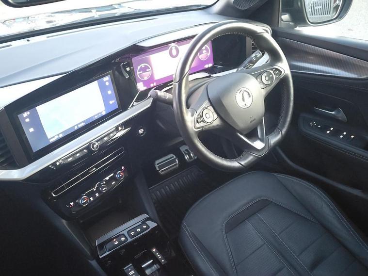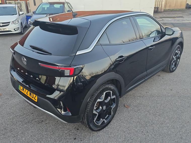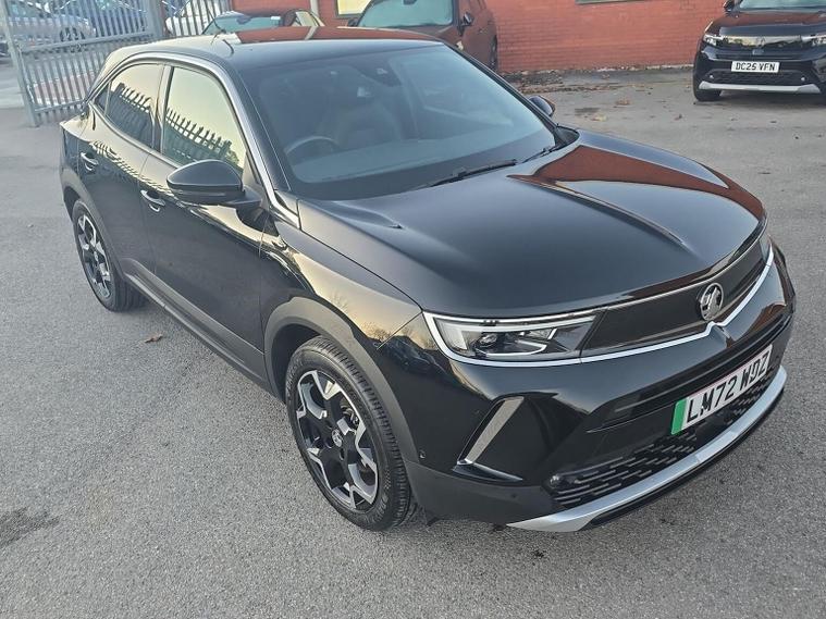The 2022 Vauxhall Mokka 50kWh Ultimate is a top-spec, 136hp (100kW) electric compact SUV featuring a 50kWh battery (approx. 200+ mile range), 100kW DC rapid charging, 18-inch bi-colour alloys, and IntelliLux LED Matrix headlights. Key features include a 10-inch multimedia Navi Pro system, 12-inch digital instrument cluster, adaptive cruise control, heated front seats/steering wheel, and panoramic rear-view camera. Performance & Battery: 50kWh battery, 136PS (100kW) electric motor, and aWLTP range of roughly 200+ miles. Charging: 100kW DC fast charging capable (0-80% in , 30 mins) and a 7.4kW or optional 11kW on-board charger. Exterior: 18-inch bi-colour alloy wheels, IntelliLux LED Matrix headlights with high beam assist, dark tinted rear windows, and LED tail lights. Interior & Technology: "Detox" cabin with 10-inch colour touchscreen, 12-inch digital instrument cluster, wireless Apple CarPlay/Android Auto, heated front seats, and heated steering wheel. Safety & Convenience: Adaptive cruise control, panoramic rear-view camera, lane keep assist, front/rear parking sensors, keyless entry/start, and forward collision alert.