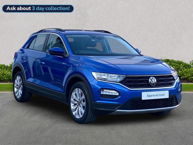 A lovely example of the T-Roc SE in the highly desirable 1.0 TSI 110ps Manual Petrol Engine finished in the Ravenna Blue paint. The SE model is a great trim level and comes with a very high level of specification as standard and includes features such as Adaptive Cruise Control, App-Connect, Bluetooth, Electric Folding Door Mirrors, Front & Rear Parking Sensors and Automatic Headlights. This vehicle qualifies for the VW Approved programme, having passed our multi-point mechanical inspection, and comes complete with; 12 Months Volkswagen Unlimited Mileage Warranty and 12 Months Roadside Assistance. Also supplied under the Lookers Transparent Pricing Policy - the price you see is the price you pay! Nationwide Delivery (subject to availability) and Finance Options (PCP and HP) available. Our dedicated advisors at Lookers Darlington are on hand 7 days a week to answer any questions you may have – Please don’t hesitate to get in touch!