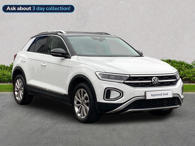A lovely example of the T-Roc Style in the highly desirable 1.5 TSI 150 Petrol Engine finished in the Pure White paint with Black roof. The Style model is the highest trim level and comes with a very high level of specification as standard and includes features such as Heated Front Seats, Adaptive Cruise Control, App-Connect, Bluetooth, Electric Folding Door Mirrors, Digital Cockpit and LED Headlights. This vehicle qualifies for the VW Approved programme, having passed our multi-point mechanical inspection, and comes complete with; 12 Months Volkswagen Unlimited Mileage Warranty and 12 Months Roadside Assistance. Also supplied under the Lookers Transparent Pricing Policy - the price you see is the price you pay! Nationwide Delivery (subject to availability) and Finance Options (PCP and HP) available. Our dedicated advisors at Lookers Darlington are on hand 7 days a week to answer any questions you may have – Please don’t hesitate to get in touch!