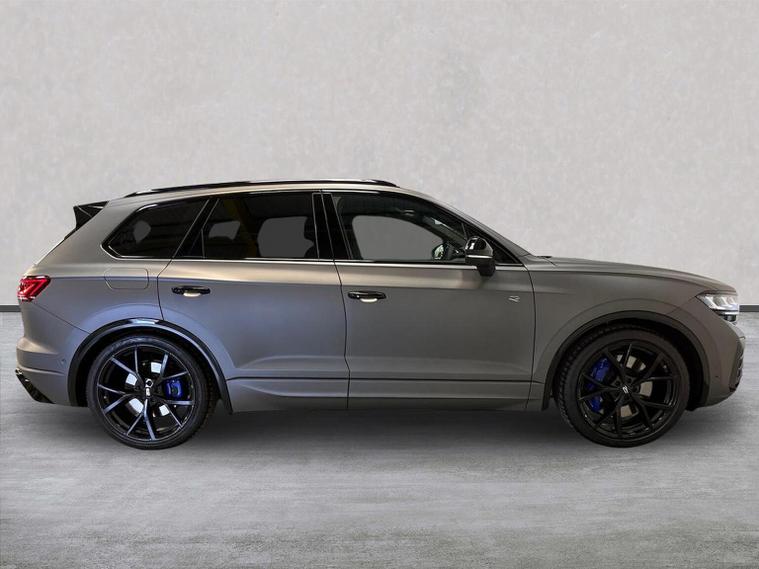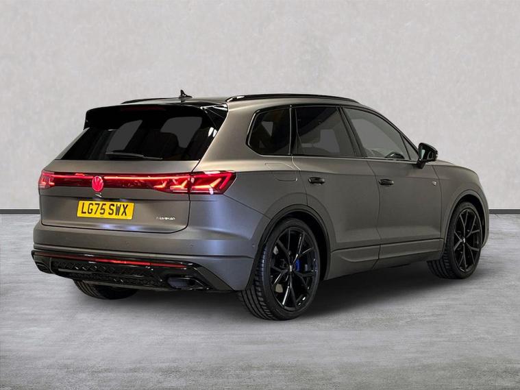 Volkswagen Approved Used Ex-Demonstrator – Available from 25th December 2025 – Rare Colour – Outstanding Specification LG75SWX VOLKSWAGEN TOUAREG 3.0 V6 TSI eHybrid 4Motion R 5dr Tip Auto Mileage: 1, 000 Miles (TBC) Colour Combination Exterior: Silicon Grey Matte – Exclusive Paint (Rare & Striking Finish) Interior: Puglia Quilted Leather in Soul Black with Blue Accents – Volkswagen R Optional Equipment 22" ‘Estoril’ Black Alloy Wheels (Volkswagen R) with 285/35 R22 performance tyres Laminated Safety Glass – 90% tinted rear windows for privacy & acoustic refinement Power-Folding Tow Bar with Trailer Assist – effortless towing capability Front Seat Ventilation & Massage Function – ultimate comfort on long journeys Heated Windscreen (laminated, acoustic) – fast clearing & extra insulation Heated Front & Rear Seats (individually controlled) Dynaudio Consequence Premium Sound System – 12+1 speakers, 730W amplifier with subwoofer Power Latching Doors – soft-close luxury feel Park Assist Pro with Area View Cameras & Remote Control – includes 360° area view, rear-view camera & remote parking via smartphone Standard Equipment Highlights Comfort & Convenience Keyless Access with full electric tailgate & Easy Open/Close virtual pedal Air Suspension with Adaptive Chassis Control (DCC) – height-adjustable, self-levelling, electronically controlled for unmatched ride quality Leather Package “Puglia” with ergoComfort Front Seats – quilted premium leather, depth adjustment & full memory functions Driver Assistance & Safety Adaptive Cruise Control with Front Assist (AEB with pedestrian & cyclist monitoring) Dynamic Road Sign Display Predictive Speed Limiter Lane Assist & Emergency Assist Tyre Pressure Monitoring System Full suite of airbags & ISOFIX safety points In-Car Entertainment & Connectivity Connectivity Pack – Wireless App-Connect, inductive smartphone charging, USB-C ports front & rear (45W fast charge) Lights & Vision Pack – auto LED headlights with coming/leaving home function, rain sensor, power-folding mirrors with memory Premium infotainment system with navigation, voice control, and 12.9” high-resolution display Volkswagen Approved Used Benefits Standard Cover with an Approved Used Purchase: ? 1 Year Volkswagen Warranty ? 1 Year Roadside Assistance When Financed with Solutions PCP from Volkswagen Financial Services: ? 2 Services included (worth £522) ? 2 Years’ Volkswagen Warranty† (worth £284) ? 2 Years’ Roadside Assistance† (worth £120) ? £250 Deposit Contribution (subject to vehicle age and finance terms)* Total Value of PCP Added Extras: £926 (*Eligibility and finance terms apply) ?? This Touareg R eHybrid is one of the most powerful, luxurious and rare Volkswagens available today. Finished in exclusive Silicon Grey Matte with Puglia quilted leather, combined with 22” Estoril alloys and a specification that leaves nothing to be desired – this is a true flagship SUV.