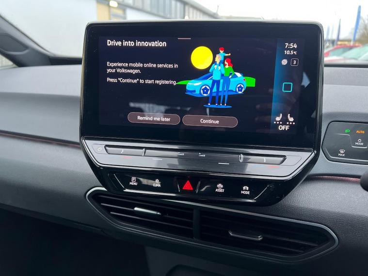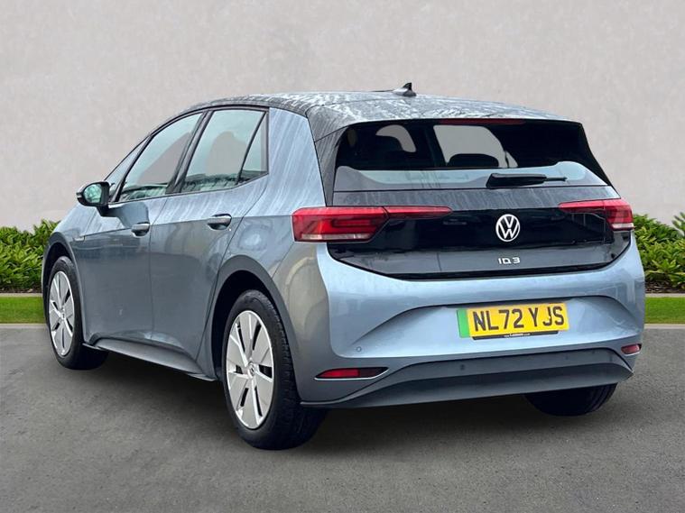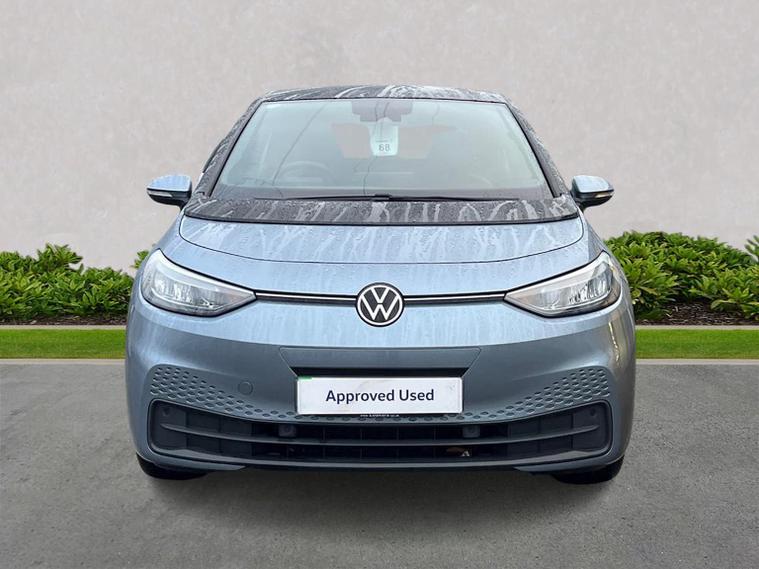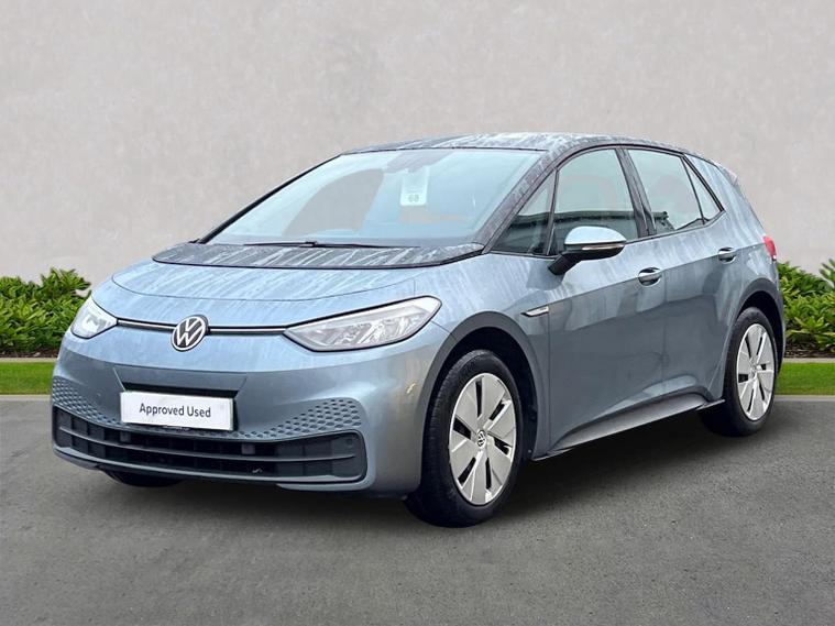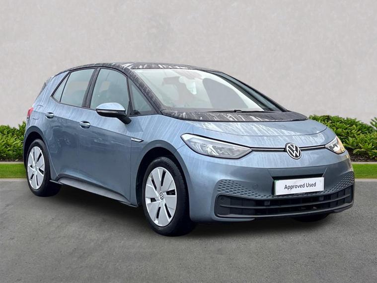 VOLKSWAGEN ID.3 150kW Life Pro Performance 58kWh 5dr Auto Mileage: 20, 600 Miles Colour: Stonewashed Blue Metallic with Platinum Grey / Soul Black interior A well-specified ID.3 Life Pro Performance finished in Stonewashed Blue Metallic. This model includes Discover Pro Navigation, wireless smartphone charging, heated seats, heated steering wheel, remote-folding mirrors, Auto-dimming rear-view mirror and the full Comfort Package. A clean, modern EV with strong range, excellent practicality and a comprehensive specification. Vehicle Specification Exterior Stonewashed Blue Metallic Auto-dimming rear-view mirror Rain sensor Welcome light Remote electrically foldable mirrors with puddle lights Interior & Comfort Platinum Grey / Soul Black interior Heated front seats Heated leather-wrapped multifunction steering wheel Centre console with illuminated storage Heated windscreen washer jets Keyless Go central locking 2 USB-C ports (front) + 2 rear charging sockets Infotainment & Connectivity Discover Pro Navigation 12” display with online services Wireless smartphone charger 2 USB-C data/charging ports Driver Assistance & Safety Front Assist with proactive passenger protection Alarm with interior monitoring OZEV Plug-in Vehicle Grant spec Keyless Go Remote power-folding mirrors Volkswagen Approved Used – BEV Benefits Standard cover with an Approved Used BEV purchase: ? 1 Year Warranty ? 1 Year Roadside Assistance When financed on Solutions PCP with Volkswagen Financial Services: ? 2 Years’ Servicing included (£384 value) ? 2 Years’ Warranty† (£284 value) ? 2 Years’ Roadside Assistance† (£120 value) ? £250 deposit contribution for vehicles up to 12 months old at 10.9% APR Representative* ? £250 deposit contribution for vehicles 13–36 months old at 11.9% APR Representative** ? £500 deposit contribution for ID.3 vehicles over 3 years old at 11.9% APR Representative***