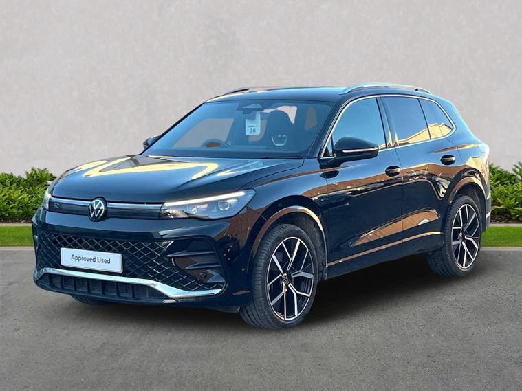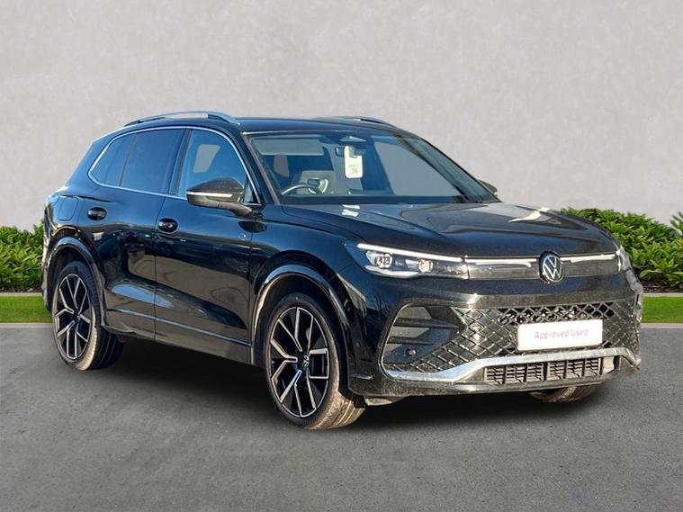 VOLKSWAGEN TIGUAN 2.0 TDI R-Line DSG 150PS Mileage: 11, 871 miles This stunning Tiguan R-Line finished in Grenadilla Black Metallic with Soul Black interior offers the perfect blend of style, practicality and performance. Packed with premium features including 20" alloys, full navigation, advanced safety systems and the Winter Pack, this is an ideal family SUV with great road presence and impressive comfort. A fantastic example with low mileage and a specification that really stands out. Colour Combination Exterior: Grenadilla Black Metallic Interior: Soul Black Specification Highlights Exterior & Wheels 20" Leeds alloy wheels (black/grey, diamond-turned) Anti-theft wheel bolts 255/40 R20 tyres Navigation & Connectivity Discover Media Satellite Navigation IDA Voice Assistant Inductive smartphone charging USB-C ports: 2 x front, 2 x rear (45W charging) Safety & Driver Assistance Adaptive Cruise Control (ACC) Front Assist with pedestrian & cyclist monitoring Oncoming vehicle braking with swerve support Rear view camera Lane Assist Side Assist with Rear Traffic Alert and exit warning system Dynamic road sign display Predictive speed limiter ISOFIX child seat anchors (front passenger and outer rear) Rear side airbags Comfort & Convenience Winter Pack Heated front seats Heated leather-wrapped multifunction sports steering wheel with touch controls and shift paddles Volkswagen Approved Used Benefits Standard Cover with an Approved Used Purchase: ? 1 Year Volkswagen Warranty ? 1 Year Roadside Assistance
