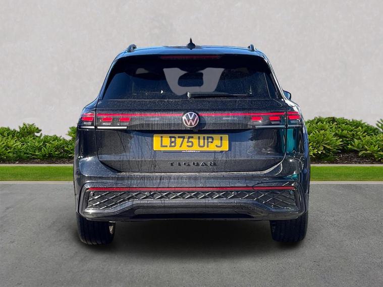 Volkswagen Tiguan 1.5 eTSI MHEV R-Line DSG Ex-Company Car – Available from 31st March 2026 Registration: LB75 UPJ | Mileage: 3, 500 miles A stunning R-Line Tiguan finished in Grenadilla Black Metallic, combining sporty styling with mild-hybrid efficiency and a very high specification. Colour & Interior Paint: Grenadilla Black Metallic Interior: Soul Black R-Line interior Key Features & Specification R-Line Styling & Exterior 20" York alloy wheels in black R-Line exterior styling Black Styling Pack Black roof rails & mirror caps Privacy glass (rear, laminated) Interior & Comfort Heated front seats Heated R-Line multifunction sports steering wheel with paddles Keyless Entry Electric tailgate with hands-free opening Adjustable driving modes Technology & Infotainment Discover Media Navigation Digital cockpit Wireless Apple CarPlay & Android Auto Wireless smartphone charging IDA Voice Assistant USB-C charging ports front and rear Driver Assistance & Safety Adaptive Cruise Control (ACC) Front Assist with Autonomous Emergency Braking Lane Assist & Side Assist Rear View Camera Park Assist Pro (with Remote Park Assist) Traffic Sign Recognition Front Cross Traffic Assist Volkswagen Approved Used Benefits Standard Cover with an Approved Used Purchase: ? 1 Year Volkswagen Warranty ? 1 Year Roadside Assistance