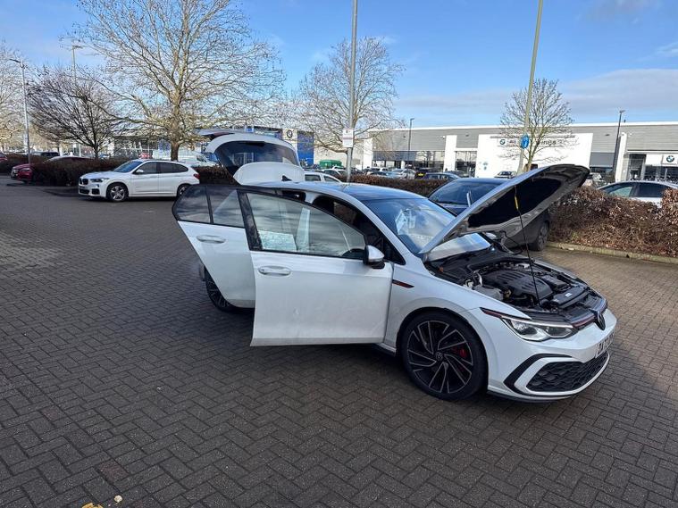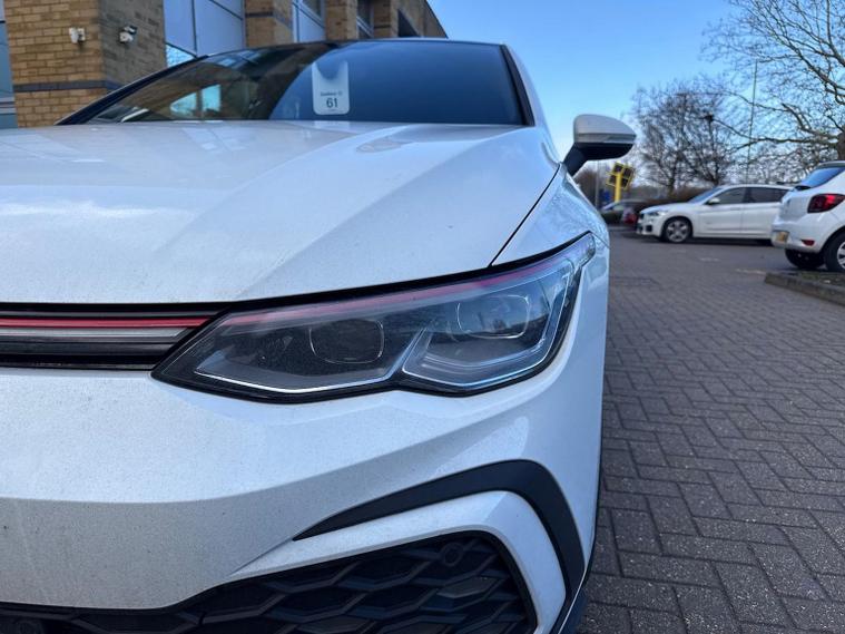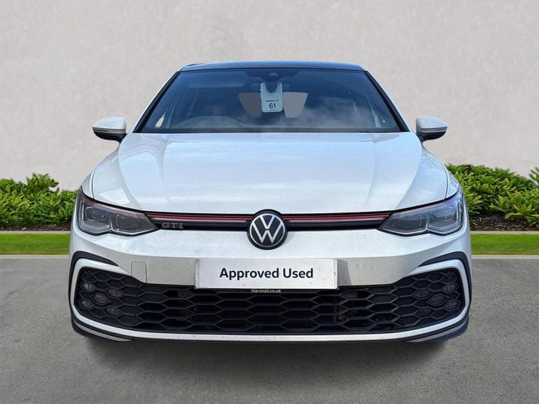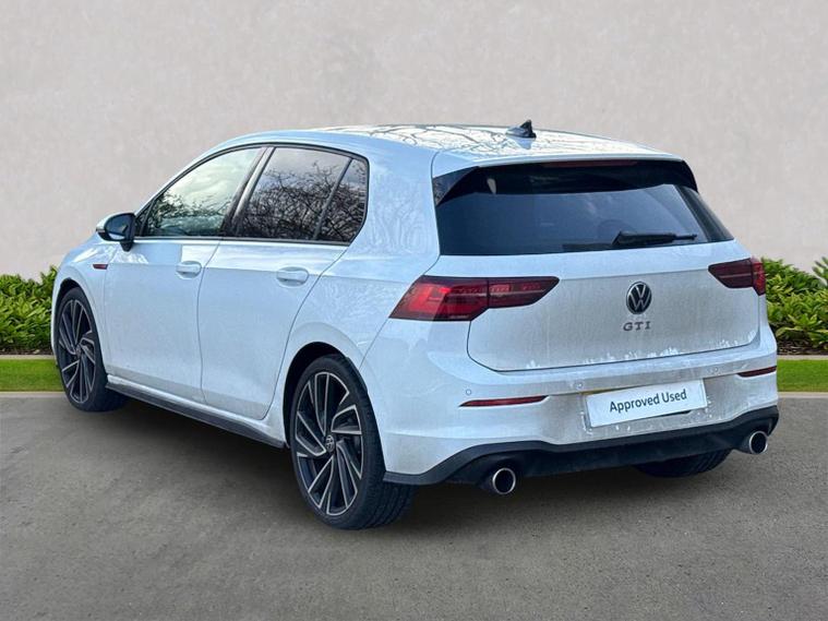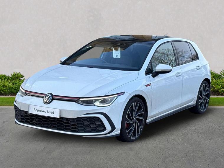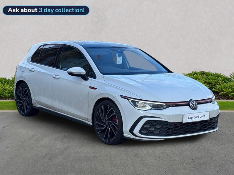 Volkswagen Golf 2.0 TSI GTI DSG DA73OPM | 20, 543 miles The Volkswagen Golf GTI is the benchmark hot hatch, combining everyday usability with genuine performance. Powered by the 2.0 TSI turbocharged petrol engine and paired with the DSG automatic gearbox, this GTI delivers sharp acceleration, confident handling and refined comfort. Finished in Pure White with the classic GTI Soul Black and Tornado Red interior, this example benefits from a strong factory specification including upgraded alloy wheels, panoramic sunroof, Winter Pack and advanced driver assistance systems. Key Features & Specification 2.0 TSI Petrol Engine (245 PS) DSG Automatic Gearbox GTI Styling & Sports Suspension 19" Adelaide Black Diamond-Turned Alloy Wheels Panoramic Sunroof IQ.LIGHT Matrix LED Headlights Discover Media Navigation Adaptive Cruise Control Lane Assist & Travel Assist Side Assist with Rear Traffic Alert Rear Privacy Glass Heated Front Seats Heated Multifunction Sports Steering Wheel with Paddle Shifters Keyless Entry & Start Folding & Heated Door Mirrors Auto-Dimming Rear View Mirror Rain Sensor Alarm with Interior Protection Volkswagen Approved Used Benefits (2026) Finance your Volkswagen with Solutions PCP and enjoy added peace of mind: Up to 2 years’ Servicing¹ for only £99 1 year Volkswagen Warranty² 1 year Roadside Assistance² Deposit Contributions with Solutions PCP £250 finance deposit contribution on vehicles aged 0–12 months £250 finance deposit contribution on vehicles aged 13–36 months Important Information ¹ Available on all vehicles up to 8 years old. Covers two consecutive services for Petrol, Diesel and eHybrid vehicles. Servicing for Battery Electric Vehicles also includes 1 x MOT. ² Valid for vehicles up to 100, 000 miles and less than 8 years old at point of activation. Offers subject to change or withdrawal at any time. Accurate at 01/26. Excludes Volkswagen Commercial Vehicles. Volkswagen Finance.