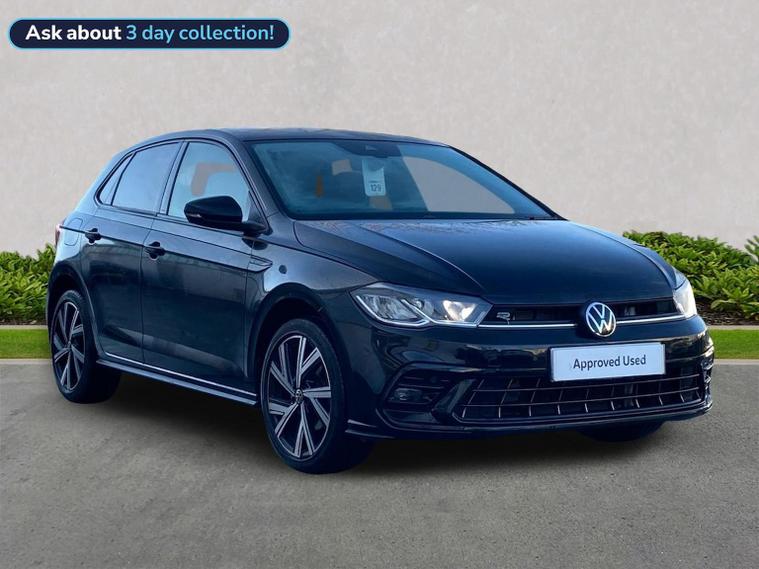 Volkswagen Polo R-Line 1.0 TSI DSG 5dr LP72 CGO | 18, 892 miles This Volkswagen Polo R-Line offers sporty styling, strong performance and excellent everyday usability. Powered by the 1.0 TSI 110 PS petrol engine and paired with a DSG automatic gearbox, it delivers smooth, responsive driving while remaining economical. Finished in Deep Black Pearl with an R-Line interior, this Polo looks sharp on the road and is well equipped with technology and comfort features as standard. Key Features & Specification 1.0 TSI Petrol Engine (110 PS) DSG Automatic Gearbox R-Line Styling Discover Media Navigation System Digital Cockpit Pro (10.25" display) Wireless App-Connect Adaptive Cruise Control Travel Assist with Lane Keeping & Traffic Jam Assist Front Assist with Autonomous Emergency Braking Light & Sight Pack with High Beam Assist 2-Zone Climate Control (Air Care Climatronic) Rear Privacy Glass Rear Parking Sensors Alarm System 17" Alloy Wheels Volkswagen Approved Used Benefits (2026) Standard cover with an Approved Used purchase: 1 year Volkswagen Warranty 1 year Roadside Assistance When financed with Solutions PCP from Volkswagen Financial Services: Up to 2 years’ Servicing for only £99 (covers two consecutive services for Petrol, Diesel and eHybrid vehicles) 1 year Volkswagen Warranty† 1 year Roadside Assistance† £250 finance deposit contribution on vehicles aged 0–12 months £250 finance deposit contribution on vehicles aged 13–36 months Important Information † Valid for vehicles up to 100, 000 miles and less than 8 years old at point of activation. Servicing available on Petrol, Diesel and eHybrid vehicles. Offers subject to change or withdrawal at any time. Accurate at 01/26. Excludes Volkswagen Commercial Vehicles. Volkswagen Financial Services.
