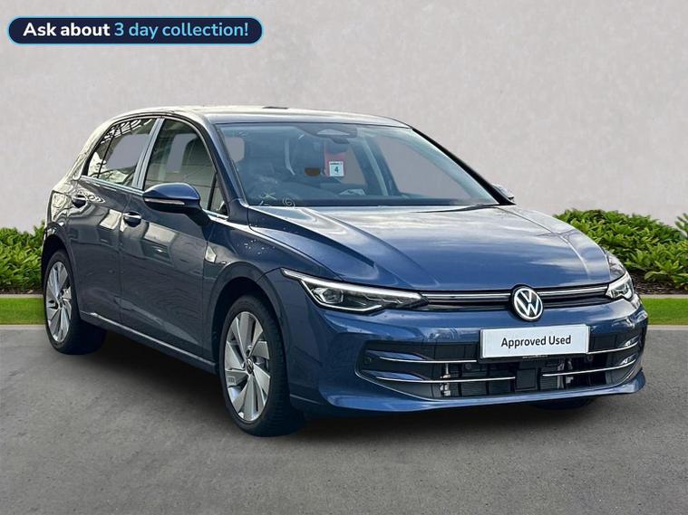 Volkswagen Golf 1.5 TSI eHybrid Style Ex-Demonstrator – Coming Soon Available from 1st May 2026 | 1, 500 miles This Volkswagen Golf eHybrid Style is a superb plug-in hybrid hatchback, combining strong performance with excellent efficiency and everyday usability. Finished in the striking Anemone Blue Metallic, this ex-demonstrator offers ultra-low mileage and a high level of standard technology, making it an ideal choice for both company car and private buyers. Key Features & Specification 1.5 TSI Plug-in Hybrid Petrol Engine (204 PS) DSG Automatic Transmission Plug-in Hybrid (19.7kWh Battery) Ex-Demonstrator Anemone Blue Metallic Style Trim Discover Navigation with 12.9" Infotainment Display Digital Cockpit IDA Voice Assistance with ChatGPT Adaptive Cruise Control with Speed Limiter Front Assist with Pedestrian & Cyclist Monitoring Travel Assist, Lane Assist & Emergency Assist Proactive Passenger Protection System Rear Parking Assistance Light & Vision Pack with High Beam Assist Auto-Dimming Rear View Mirror Rain Sensor Heated Front Seats Heated Leather-Wrapped Multifunction Steering Wheel with Shift Paddles Wireless App-Connect e-SIM Connectivity Volkswagen Approved Used Benefits – 2026 Standard cover with an Approved Used purchase: 1 Year Volkswagen Warranty 1 Year Roadside Assistance When financed with Solutions PCP from Volkswagen Financial Services: Up to 2 Years’ Servicing for only £99¹ 1 Year Volkswagen Warranty² 1 Year Roadside Assistance² Finance Deposit Contribution available, subject to vehicle age and finance terms³ Important Information ¹ Available on vehicles up to 8 years old. Covers two consecutive services for Petrol, Diesel and eHybrid vehicles. ² Valid for vehicles up to 100, 000 miles and less than 8 years old at point of activation. ³ Finance subject to status and availability. Volkswagen Financial Services.