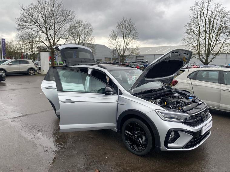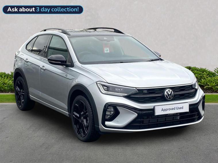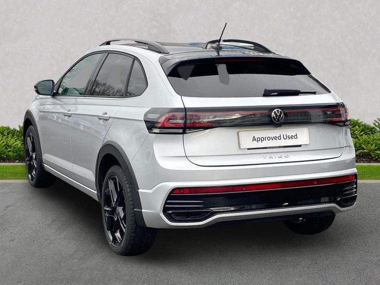 Volkswagen Taigo 1.5 TSI Black Edition DSG Ex-Demonstrator | 1, 500 miles - Coming Soon - Available 1st may 2026 This Volkswagen Taigo Black Edition combines sporty performance with bold SUV styling. Powered by the punchy 1.5 TSI 150 PS petrol engine and paired with a DSG automatic gearbox, it delivers smooth, responsive driving with everyday practicality. Finished in Reflex Silver Metallic with Black Roof, this low-mileage ex-demonstrator stands out with its premium Black Edition specification and advanced driver assistance technology. Key Features & Specification 1.5 TSI Petrol Engine (150 PS) DSG Automatic Transmission Ex-Demonstrator Reflex Silver Metallic with Black Roof Black Edition Styling Discover Media Navigation with Streaming & Internet Wireless App-Connect Digital Cockpit Adaptive Cruise Control with Speed Limiter Travel Assist with Lane Keeping & Traffic Jam Assist Front Assist with Autonomous Emergency Braking Lane Change Assist & Proactive Passenger Protection Park Assist Rear View Camera IQ.Light LED Matrix Headlights with Dynamic Light Assist Heated Front Seats Driving Profile Selection Black Style Pack with 18" Black Alloy Wheels Privacy Glass Keyless Central Locking Alarm System Rain Sensor & Auto-Dimming Rear View Mirror Volkswagen Approved Used Benefits – 2026 Standard cover with an Approved Used purchase: 1 Year Volkswagen Warranty 1 Year Roadside Assistance When financed with Solutions PCP from Volkswagen Financial Services: Up to 2 Years’ Servicing for only £99¹ 1 Year Volkswagen Warranty² 1 Year Roadside Assistance² Finance Deposit Contribution available, subject to vehicle age and finance terms³ Important Information ¹ Available on vehicles up to 8 years old. Covers two consecutive services for Petrol, Diesel and eHybrid vehicles. ² Valid for vehicles up to 100, 000 miles and less than 8 years old at point of activation. ³ Finance subject to status and availability. Volkswagen Financial Services.