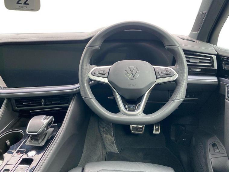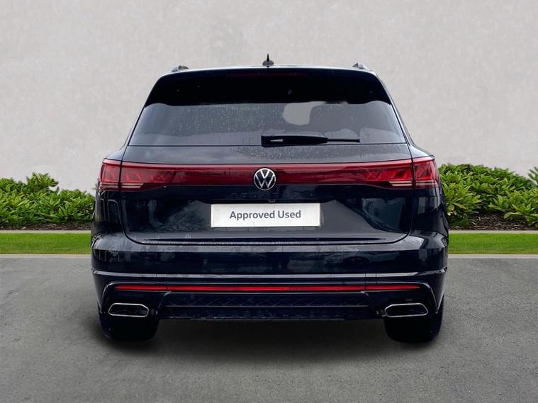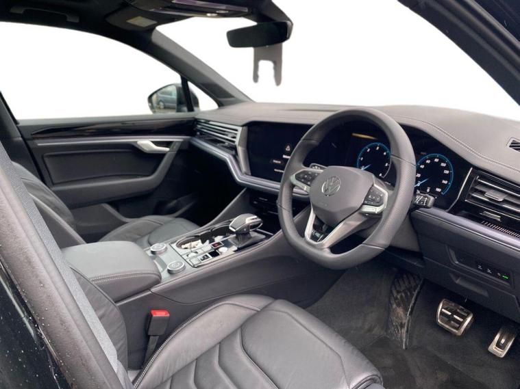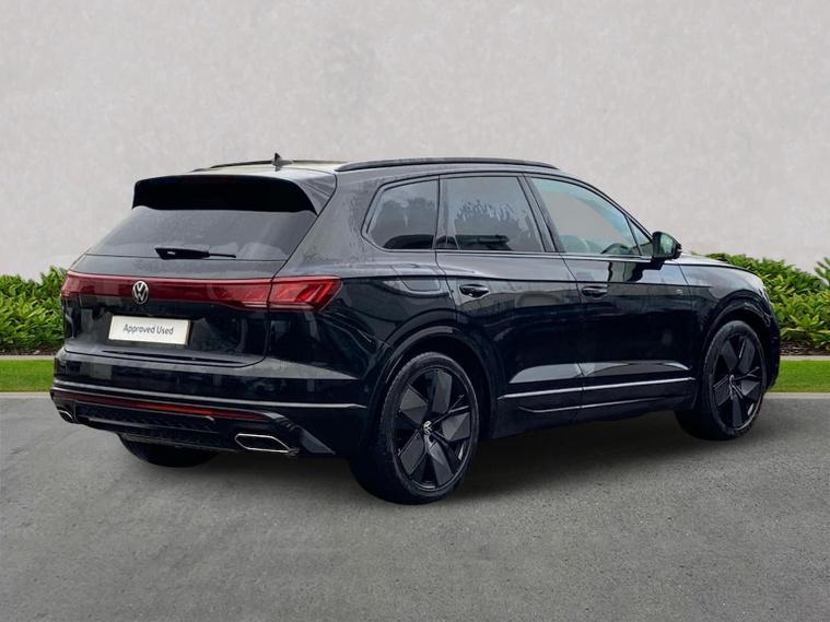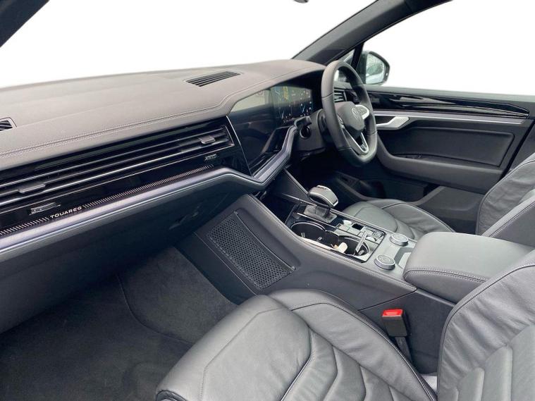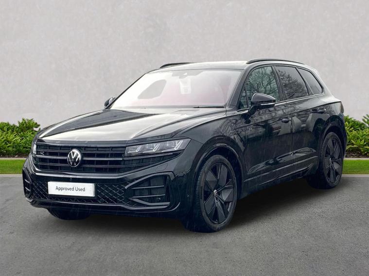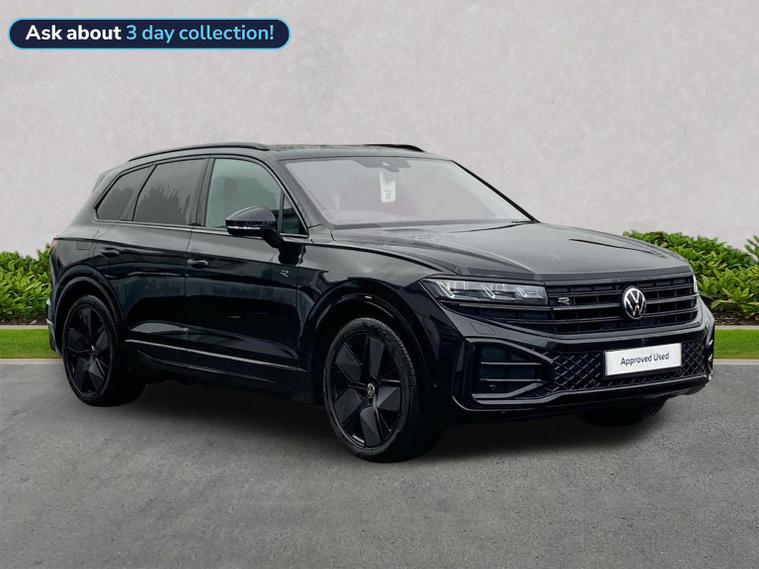Volkswagen Touareg 3.0 TDI V6 Black Edition 4Motion SUV | Diesel | Automatic | 286 PS Mileage: 7, 803 miles Transmission: Tiptronic Automatic Drivetrain: 4Motion All-Wheel Drive Fuel Type: Diesel Colour: Grenadilla Black Metallic Interior: Soul Black / Crystal Grey Vehicle Overview The Touareg Black Edition delivers luxury, performance and capability in equal measure. Powered by a refined 3.0 V6 diesel engine and paired with 4Motion all-wheel drive, this Touareg offers effortless long-distance comfort, impressive towing ability and a premium driving experience. Key Specification Highlights 3.0 TDI V6 diesel engine (286 PS) Tiptronic automatic gearbox 4Motion all-wheel drive Black Edition styling pack Air suspension with Adaptive Chassis Control (DCC) 21" Leeds Black alloy wheels Keyless Access Electric tailgate with Easy Open & Close (virtual pedal) Heated windscreen (laminated, acoustic) Park Assist Pro with Area View camera system Wireless App-Connect Wireless phone charging USB-C ports front and rear Memory front seats with power adjustment Power-folding, heated and auto-dimming mirrors LED headlights with automatic light control Darkened LED rear lights with illuminated Volkswagen logo Black roof rails Anti-theft alarm system This Touareg Black Edition is exceptionally well specified, combining subtle black styling details with advanced technology and premium comfort features throughout. Volkswagen Approved Used Benefits (2026) Standard cover with an Approved Used purchase: ? 1 Year Volkswagen Warranty ? 1 Year Roadside Assistance When financed with Solutions PCP from Volkswagen Financial Services: ? Up to 2 Services for only £99* ? 1 Year Volkswagen Warranty† ? 1 Year Roadside Assistance† ? £250 Deposit Contribution* * Available on vehicles up to 8 years old. Covers two consecutive services for Petrol and Diesel vehicles. † Valid for vehicles under 8 years old and under 100, 000 miles at point of activation. Finance subject to status. Terms and conditions apply.