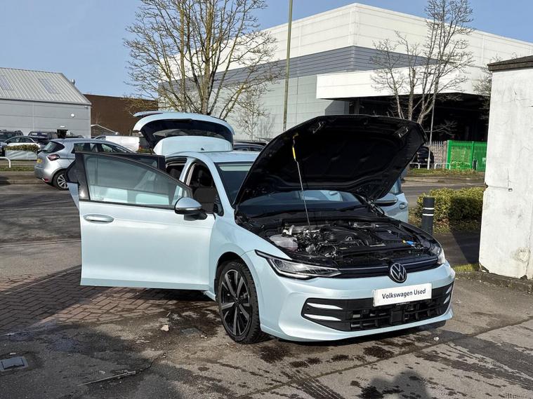 Volkswagen Golf 1.5 eTSI 150 Match DSG Crystal Ice Blue Metallic | 2, 800 Miles | Automatic A superb nearly-new Golf Match finished in striking Crystal Ice Blue Metallic with Soul Black interior. With just 2, 800 miles, this example offers exceptional value compared to new, combining the latest technology, efficiency and everyday practicality. Powered by the 1.5 eTSI mild-hybrid 150PS engine paired with DSG automatic transmission, this Golf delivers smooth performance, excellent fuel economy and refined driving comfort. Key Features 1.5 eTSI Mild Hybrid Petrol Engine (150 PS) 7-Speed DSG Automatic Gearbox 18" ‘Catania’ Black Diamond-Turned Alloy Wheels Discover Navigation System with 12.9" Infotainment Display IDA Voice Assistant with ChatGPT Integration Wireless App-Connect Digital Radio (DAB) Adaptive Cruise Control (ACC) Front Assist with Pedestrian & Cyclist Monitoring Park Assist Pro with Park Distance Control Rear View Camera Keyless Access with SAFELOCK Car2X Intelligent Vehicle Networking Light & Vision Pack Auto-Dimming Rear View Mirror Rain Sensor High Beam Assist Alarm with Interior Protection Rear Tinted Glass (Privacy Glass) The Golf Match offers outstanding specification, advanced driver assistance systems and premium build quality — making it one of the most complete hatchbacks in its class. Volkswagen Approved Used Benefits (2026) Standard cover with an Approved Used purchase: ? 1 Year Volkswagen Warranty ? 1 Year Roadside Assistance When financed with Solutions PCP from Volkswagen Financial Services: ? Up to 2 Services for only £99* ? 1 Year Volkswagen Warranty† ? 1 Year Roadside Assistance† ? £250 Deposit Contribution* Servicing available on vehicles up to 8 years old. Covers two consecutive services. † Warranty and Roadside Assistance valid on vehicles under 8 years old and under 100, 000 miles at activation. Finance subject to status. Terms and conditions apply.