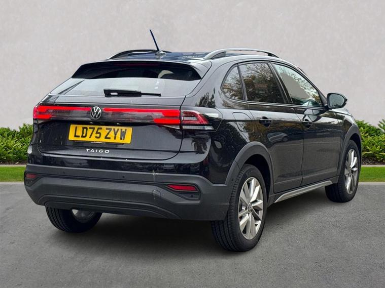 Volkswagen Taigo 1.0 TSI 115 Match DSG Deep Black Pearl | 2, 000 Miles | Automatic Ex-Demonstrator A superb opportunity to secure a nearly-new Taigo Match DSG with just 2, 000 miles. Finished in Deep Black Pearl with Titanium Black/Ceramique interior, this ex-demonstrator offers fantastic specification, efficiency and practicality in a stylish coupe-SUV design. Powered by the 1.0 TSI 115PS engine paired with DSG automatic transmission, the Taigo delivers smooth performance, excellent fuel economy and effortless everyday driving. Key Features 1.0 TSI 115PS Petrol Engine 7-Speed DSG Automatic 17" ‘Clayton’ Alloy Wheels Rear Tinted Glass (Privacy Glass) Keyless Access with SAFELOCK Alarm with Interior Protection Discover-Ready Infotainment with Streaming & Internet Wireless App-Connect Digital Radio (DAB) Rear View Camera Park Assist (Parallel & Bay Parking) Adaptive Cruise Control Front Assist with Autonomous Emergency Braking Travel Assist with Lane Keeping & Emergency Assist Lane Change System (Side Assist) Light & Sight Pack Automatic Headlights Rain Sensor Auto-Dimming Rear View Mirror High Beam Assist Heated Front Seats A high-spec, low-mileage Taigo that combines elevated driving position, advanced safety systems and smart technology — ideal for both town and motorway use. Volkswagen Approved Used Benefits (2026) Standard cover with an Approved Used purchase: ? 1 Year Volkswagen Warranty ? 1 Year Roadside Assistance When financed with Solutions PCP from Volkswagen Financial Services: ? Up to 2 Services for only £99* ? 1 Year Volkswagen Warranty† ? 1 Year Roadside Assistance† ? £250 Deposit Contribution* Servicing available on vehicles up to 8 years old. Covers two consecutive services. † Warranty and Roadside Assistance valid on vehicles under 8 years old and under 100, 000 miles at activation. Finance subject to status. Terms and conditions apply.