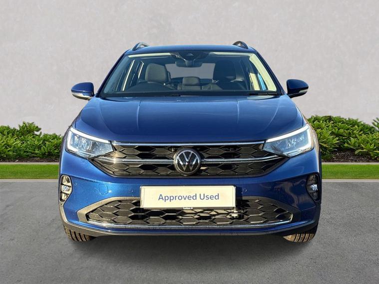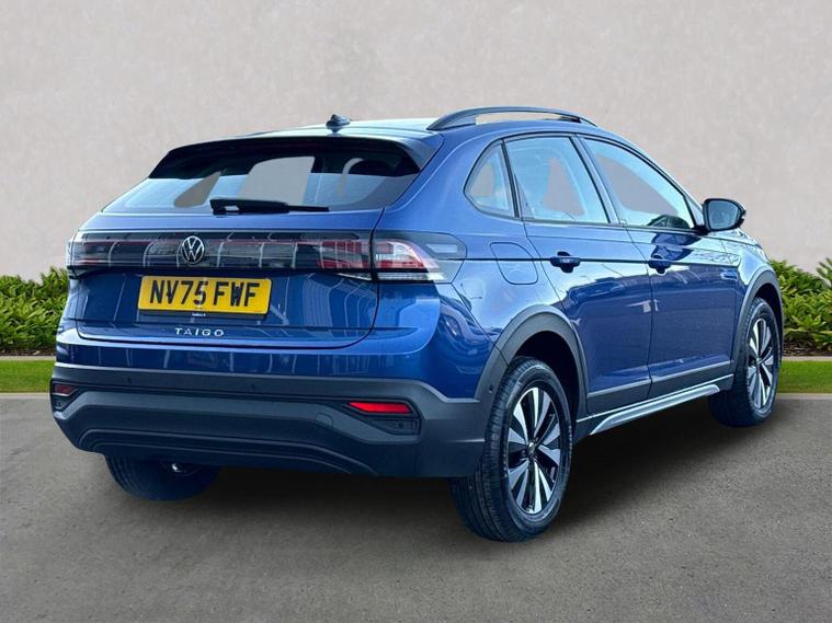Release date 29/03/2026. Current demonstration vehicle. Finished in attractive Reef Blue metallic paint with a Titanium Black interior, this Volkswagen Taigo Life 1.0 TSI offers stylish coupe-inspired SUV design combined with efficient performance and a strong level of standard equipment. Powered by the responsive 1.0 TSI petrol engine producing 95PS and paired with a 5-speed manual gearbox, it delivers smooth everyday driving with excellent fuel efficiency, making it ideal for both urban and longer journeys. This Taigo Life is well equipped for safety and peace of mind, featuring an anti-theft alarm system with interior monitoring, backup horn and SAFELOCK central locking operated via remote control folding keys. Driver assistance technology is extensive, with the Drivers Assistance Pack adding Park Assist to support both parallel and bay parking, proactive passenger protection and lane change assist for increased motorway confidence. Further support comes from the Travel Assist package, which includes semi-automated driving assistance with lane keeping, traffic jam assist and emergency assist. Predictive adaptive cruise control and Front Assist with autonomous emergency braking enhance safety and comfort on longer journeys, helping to reduce driver fatigue. The exterior is enhanced by 16-inch Everett alloy wheels with a black diamond-turned finish, complemented by low rolling resistance tyres for improved efficiency. Visibility and convenience are improved by the Light and Sight Pack, which includes automatic headlights with LED daytime running lights, coming home and leaving home functionality, rain-sensing wipers, an auto-dimming rear-view mirror and high beam assist. Infotainment is handled by the Ready 2 Discover system with streaming and internet, supported by wireless App-Connect, eSIM connectivity and a six-speaker audio system. The system is navigation-ready, allowing easy upgrades if required, and provides seamless smartphone integration. With its modern design, advanced driver assistance systems and efficient petrol engine, this Volkswagen Taigo Life 1.0 TSI is a practical, stylish and well-equipped compact SUV, perfectly suited to everyday driving.