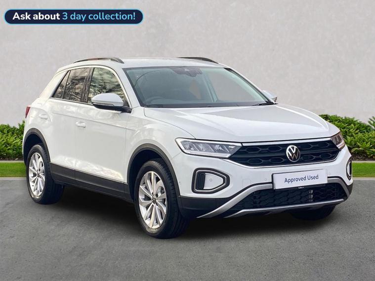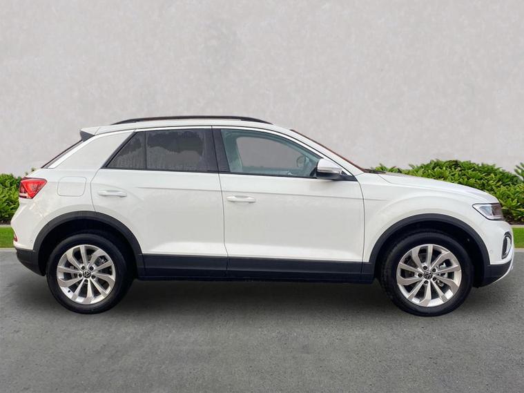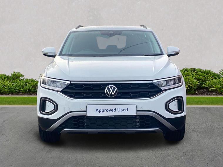 Current demonstation vehicle available 30/03/2026. Please call for up to date miles. Volkswagen T-Roc Match 1.0 TSI 115PS 6-speed Manual 5 Door, finished in Pure White with a Titanium Black and Ceramique interior, giving the car a modern, clean look with a well-designed and practical cabin. Powered by the 1.0 TSI petrol engine producing 115PS and paired with a 6-speed manual gearbox, this T-Roc offers a strong balance of performance and efficiency, making it well suited to both urban driving and longer motorway journeys. The exterior is enhanced by 17-inch ‘Johannesburg’ alloy wheels fitted with low-rolling-resistance tyres and anti-theft wheel bolts, while rear tinted glass from the B-pillar backwards adds both privacy and a more premium appearance. Inside, comfort and convenience are well catered for with front seats featuring lumbar support, ensuring good support on longer drives. Keyless Access allows keyless locking and starting with SAFELOCK, making everyday use simple and secure. A rear-view camera aids parking and low-speed manoeuvring, adding confidence in tighter spaces. Technology is provided by the “Ready 2 Discover” infotainment system, which includes wireless App-Connect, Bluetooth connectivity, six speakers, an integrated e-SIM for online services and preparation for navigation, keeping you connected and entertained on the move. Safety is a strong point, with a driver assistance package that includes Front Assist with Autonomous Emergency Braking, Adaptive Cruise Control with speed limiter, High Beam Assist, and an extended proactive passenger protection system. Additional security is provided by the anti-theft alarm system with interior monitoring, central locking with SAFELOCK, and a full tool kit with jack for added peace of mind. Overall, this T-Roc Match combines efficient performance, strong safety technology, modern connectivity and everyday practicality, making it a versatile and appealing compact SUV.